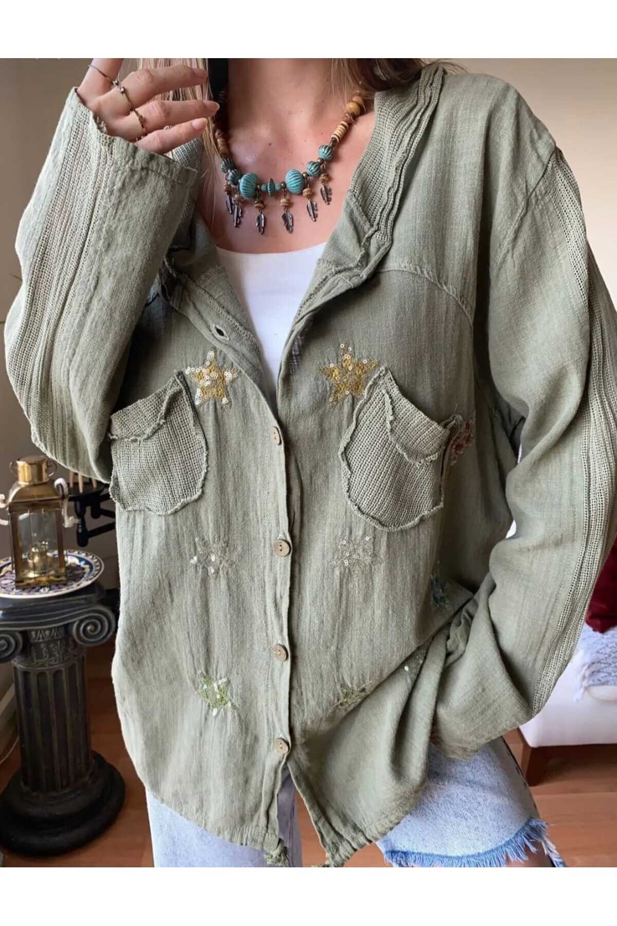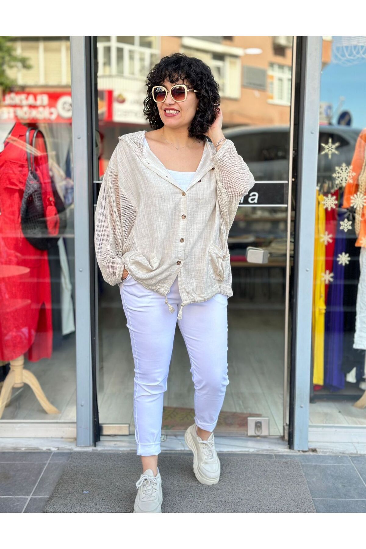 Kadın Oversize Çift Cepli Yıkamalı File Detay %100 Pamuk Gömlek Ceket Bej Kadın Oversize Çift Cepli Yıkamalı File Detay %100 Pamuk Gömlek Ceket Bej 1209 L/XL