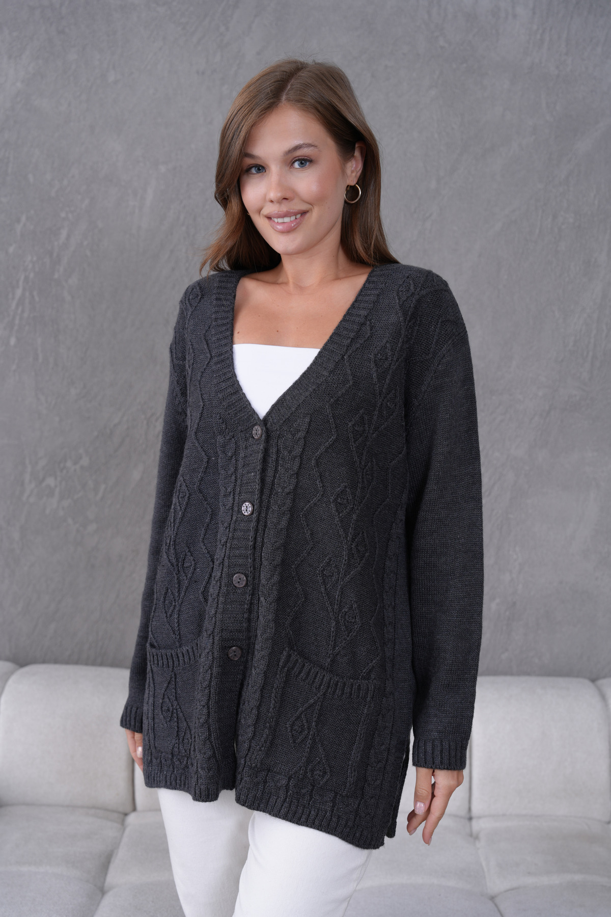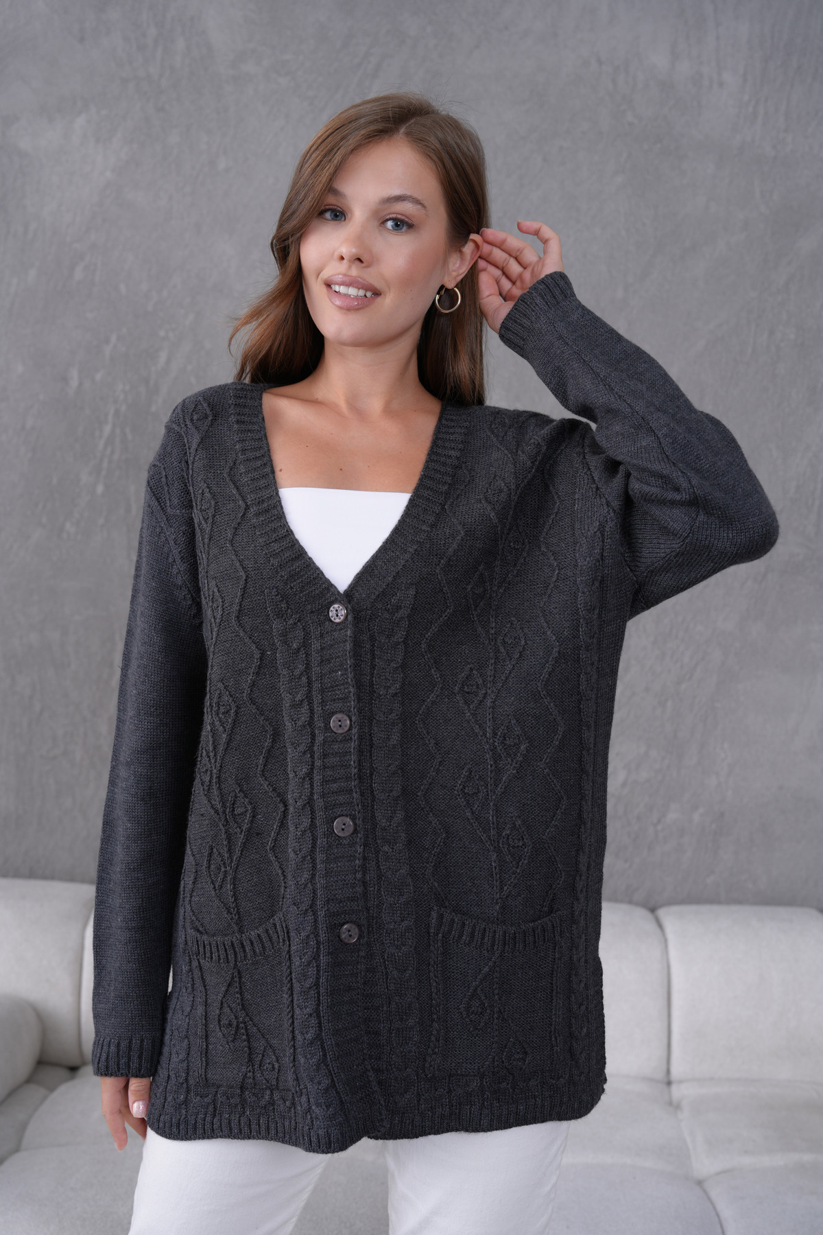 Kadın Anne Triko Cep detaylı Yün Hırka Kadın Anne Triko Cep detaylı Yün Hırka 402 3XL