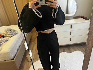 Çoban detaylı Kadın Siyah Triko Takım Çoban detaylı Kadın Siyah Triko Takım TAKIM000 Standart
