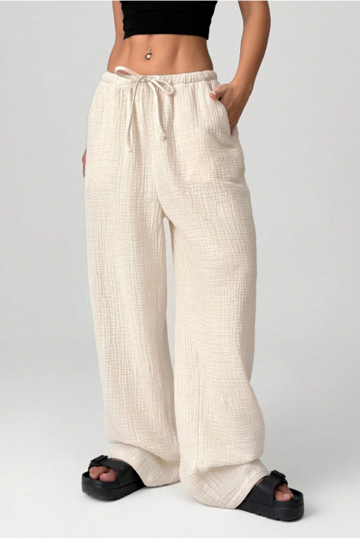 Bej Bol Paça Müslin Kadın Pantolon Bej Bol Paça Müslin Kadın Pantolon KMSLPNT0125 XL