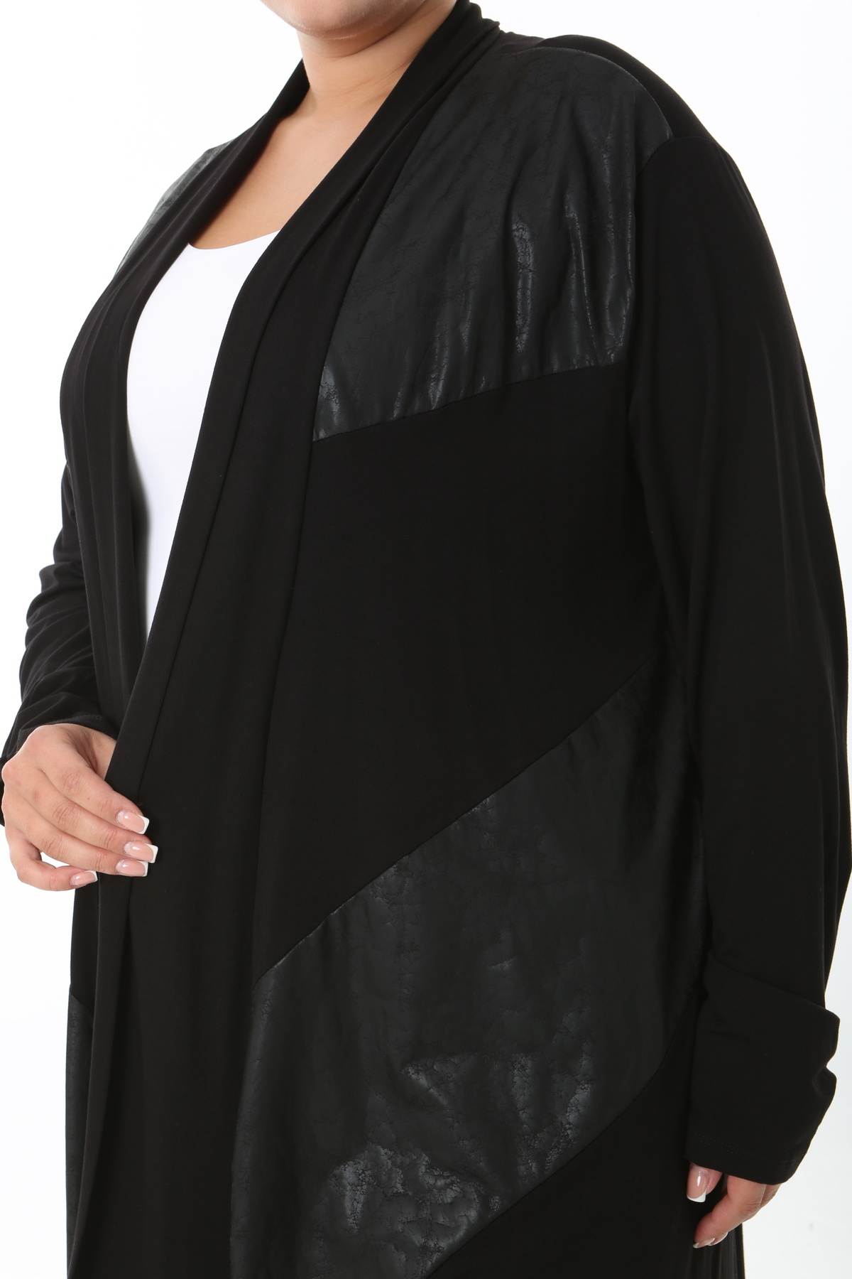 KADIN LİKRALI VİSKON SİYAH DERİ DETAYLI BÜYÜK BEDEN HIRKA KADIN LİKRALI VİSKON SİYAH DERİ DETAYLI BÜYÜK BEDEN HIRKA H10189 60-62