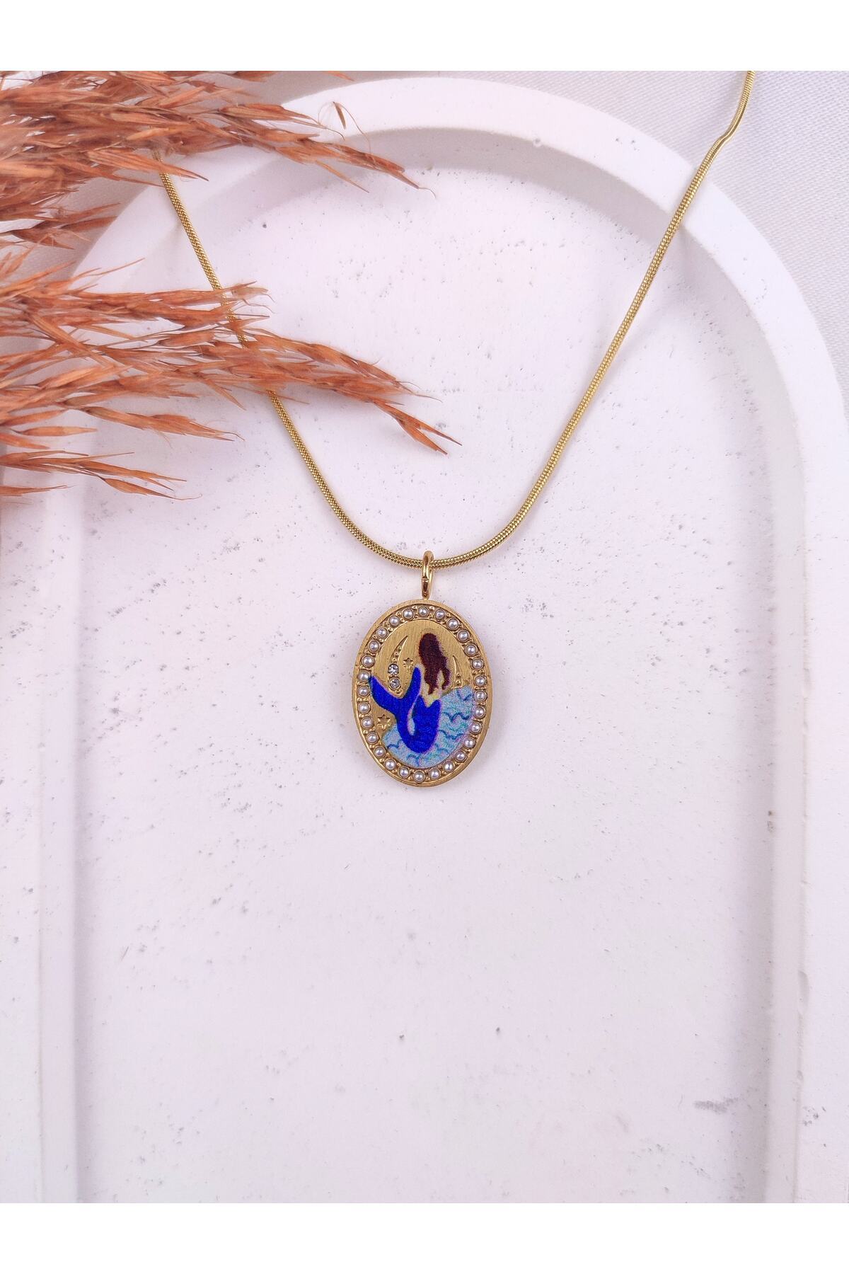 Kadın Çelik Gold İncili Deniz Kızı Vintage Kolye Kadın Çelik Gold İncili Deniz Kızı Vintage Kolye KKGDİNDNKZVN001 45 cm