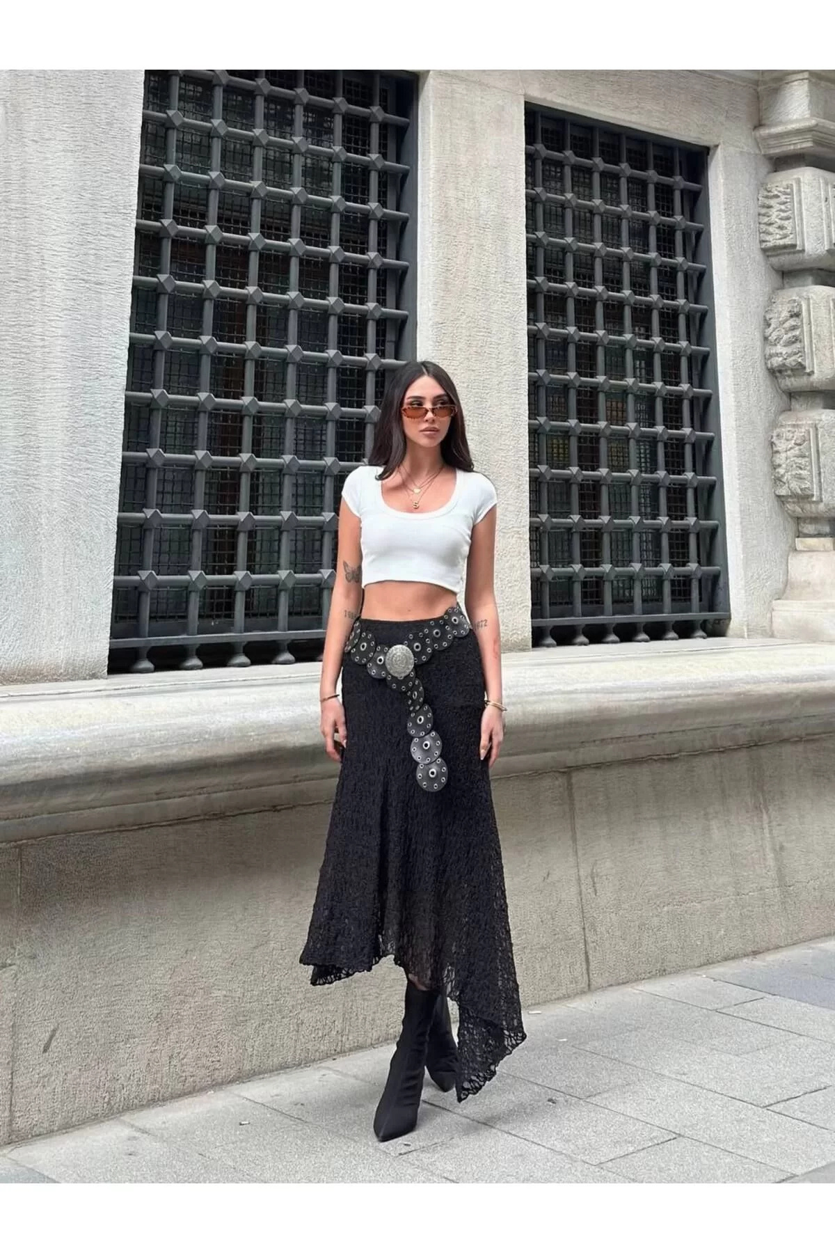 Kadın Siyah Yüksek Bel Dantel Fisto Asimetrik Kesim Bohem Yazlık Midi Etek Kadın Siyah Yüksek Bel Dantel Fisto Asimetrik Kesim Bohem Yazlık Midi Etek P210S5654 L