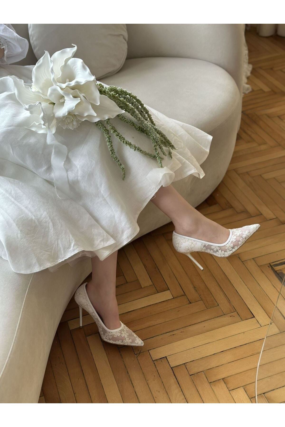 Beyaz Saten Noche Gelin Ayakkabısı Beyaz Saten Noche Gelin Ayakkabısı 35072 1324G 41