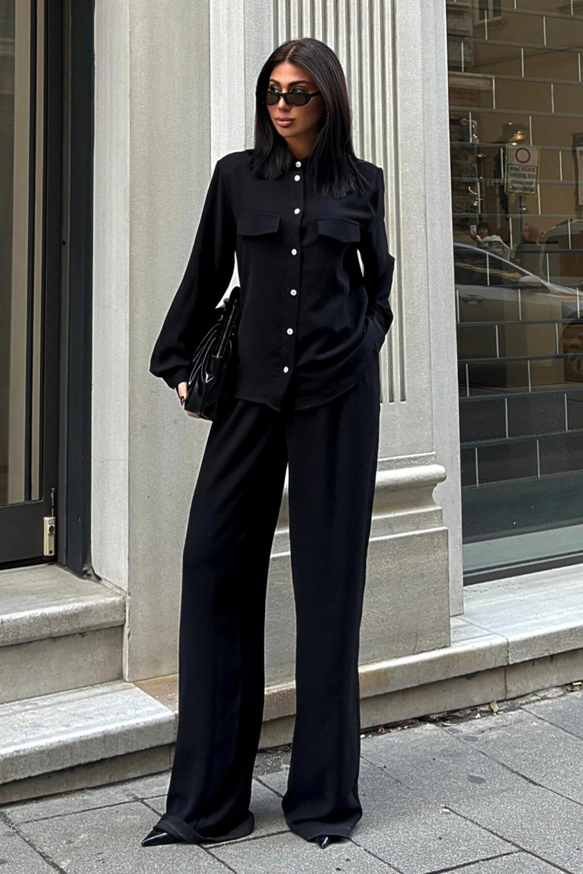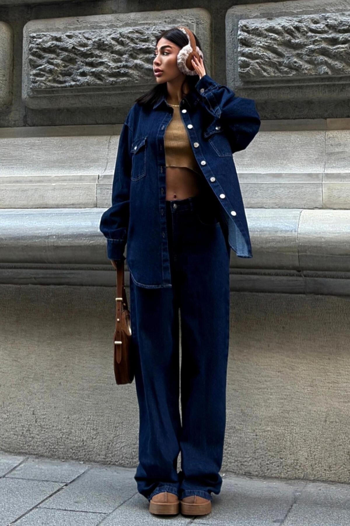 Gömlek ve Palazzo Pantolon Klasik Denim Takım 10070 R10-G-K1 Gömlek ve Palazzo Pantolon Klasik Denim Takım 10070 R10-G-K1 S5Y10070 XL
