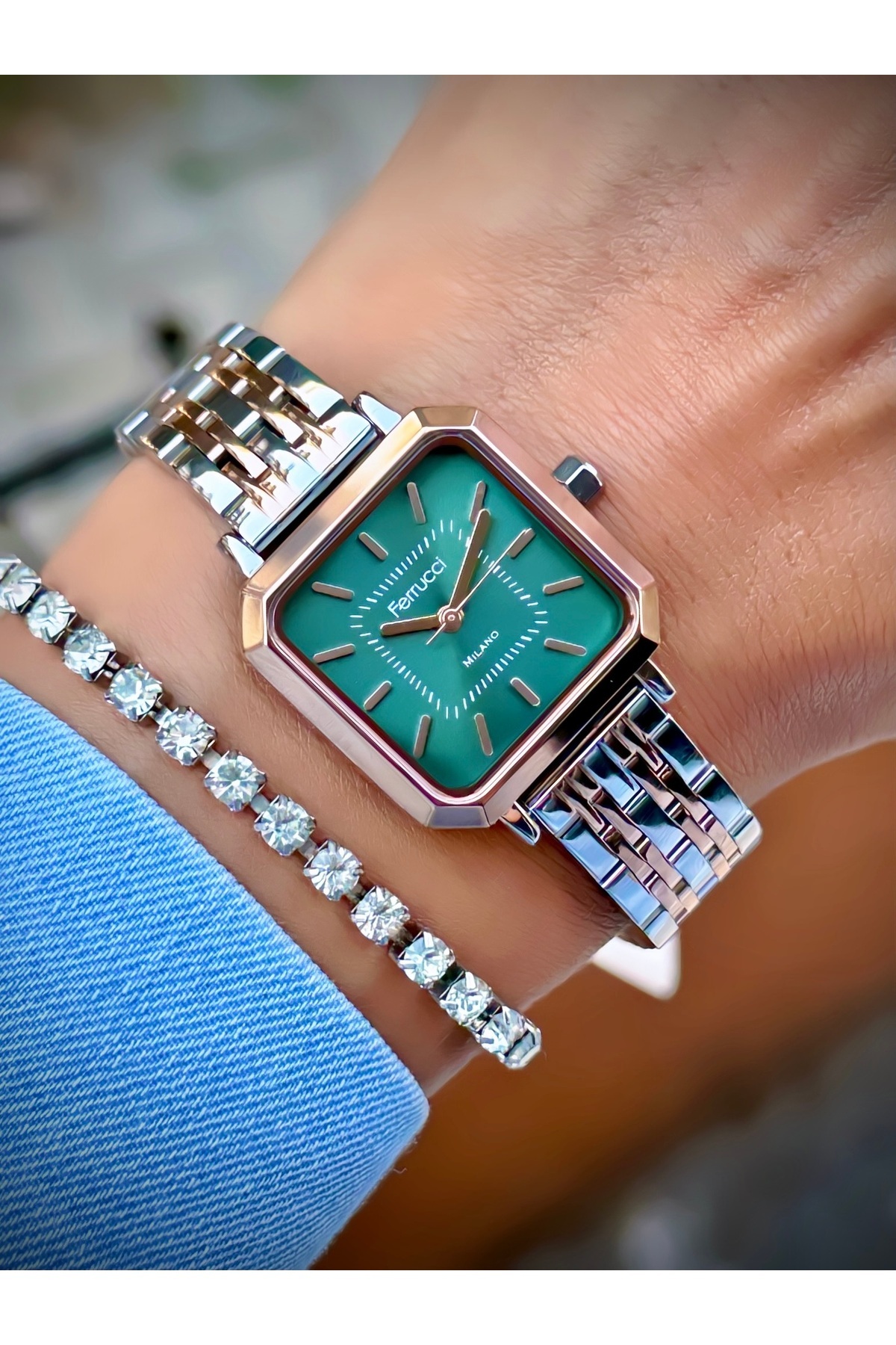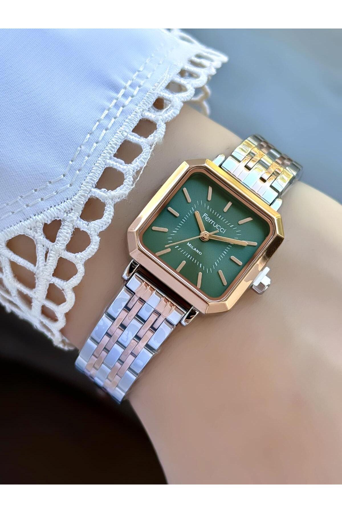 Milano Kare Yeşil Kadran Rose Gold & Gümüş Metal Kordon Kadın Kol Saati Milano Kare Yeşil Kadran Rose Gold & Gümüş Metal Kordon Kadın Kol Saati FBG17265 تک سایز