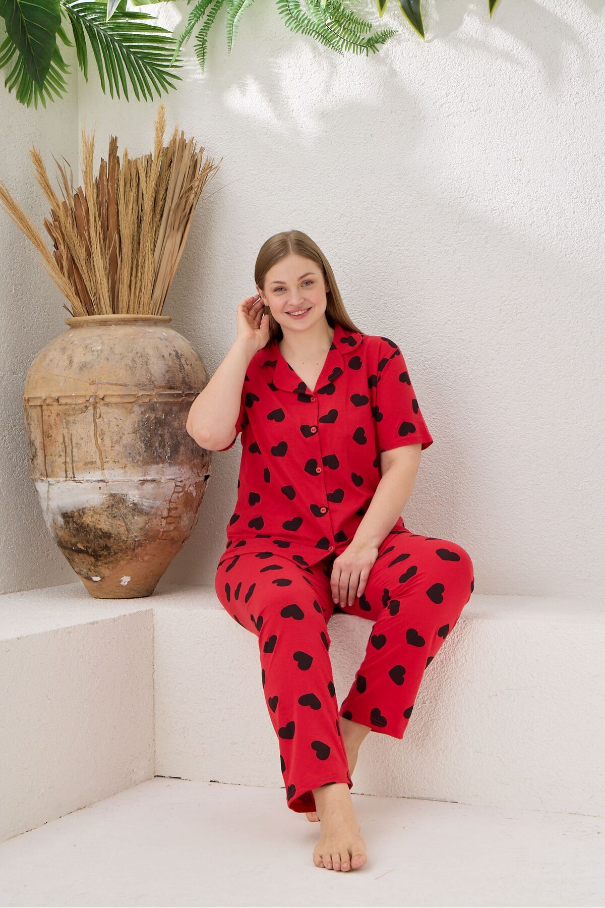 Kadın Büyük Beden Viskon Elastan Kumaş Kısa Kollu Kapri Takım 14545-B Kadın Büyük Beden Viskon Elastan Kumaş Kısa Kollu Kapri Takım 14545-B 5XL