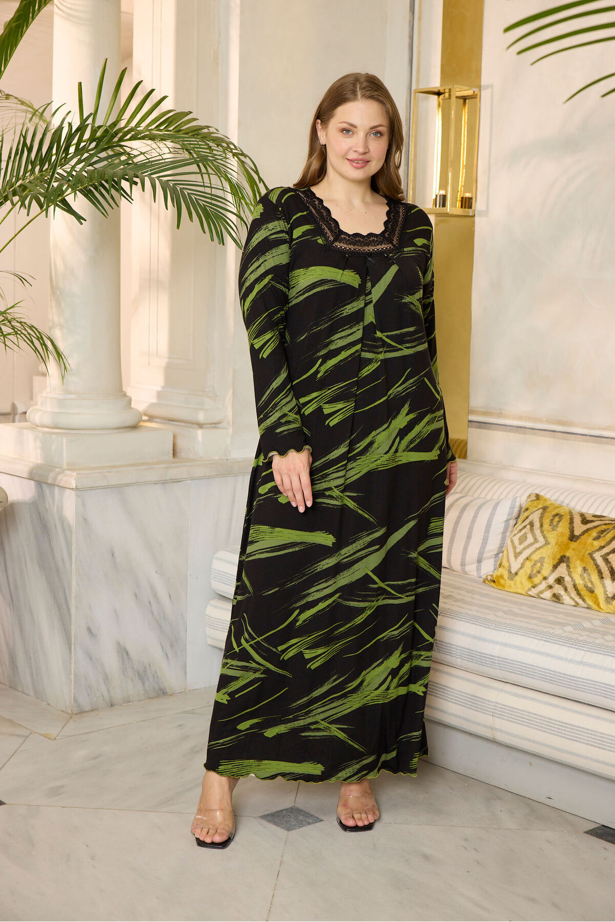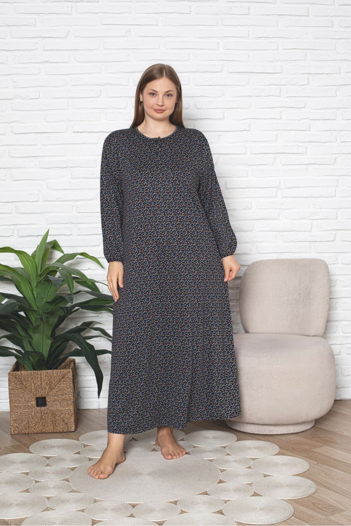 Siyah Minik Çiçek Desenli Ring Viskon Uzun Kol Elbise Siyah Minik Çiçek Desenli Ring Viskon Uzun Kol Elbise 1004 5XL
