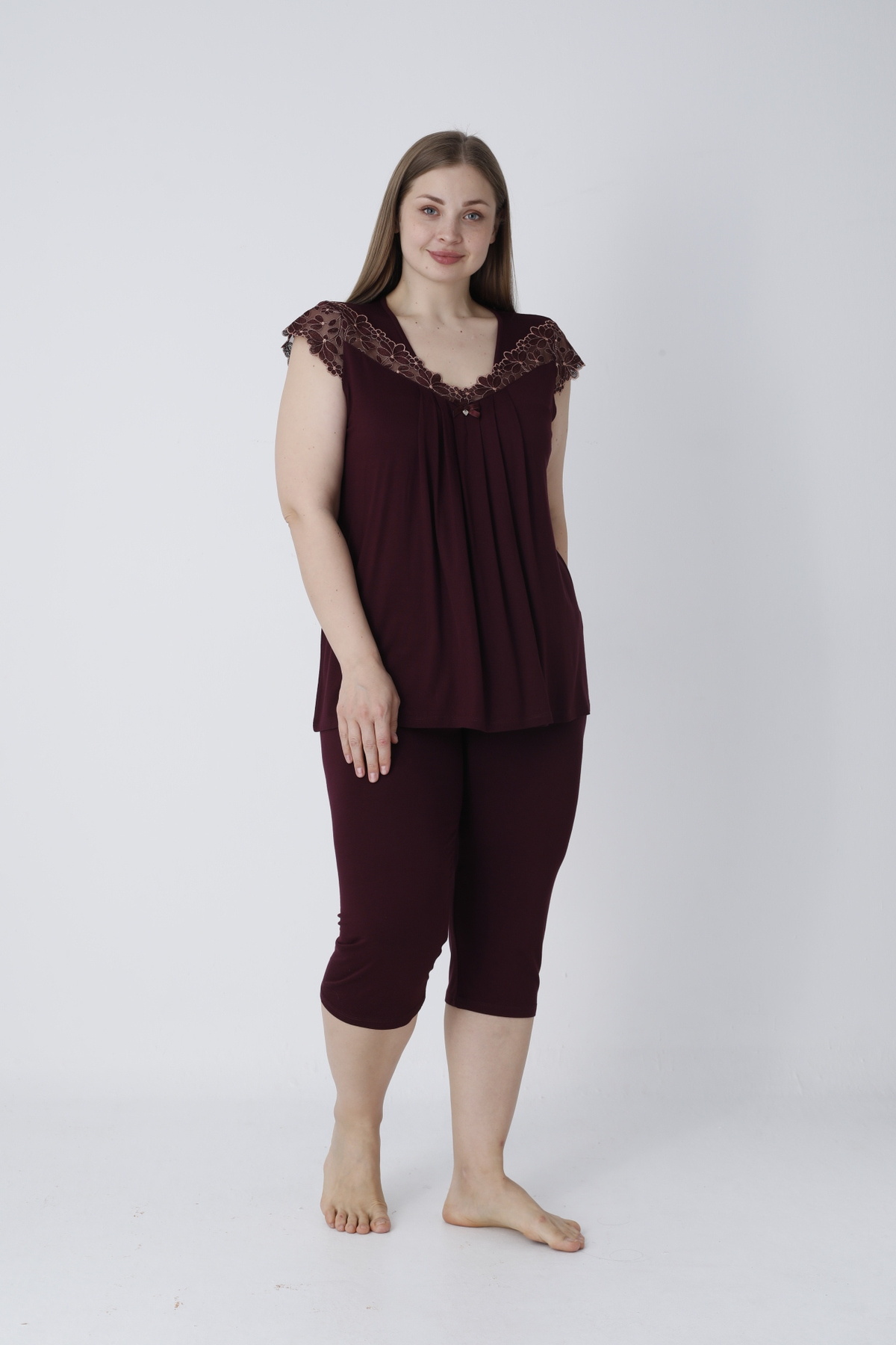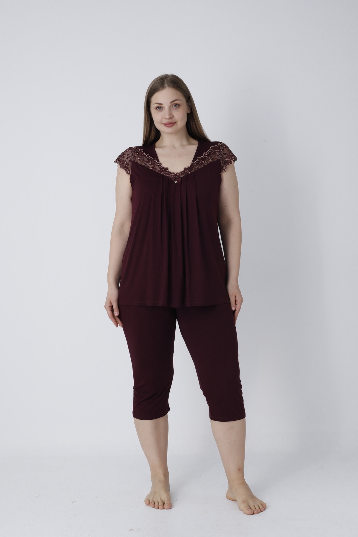 Kadın Büyük Beden Viskon Elastan Kumaş Kısa Kollu Kapri Takım / Bordo - 14680 Kadın Büyük Beden Viskon Elastan Kumaş Kısa Kollu Kapri Takım / Bordo - 14680 4XL