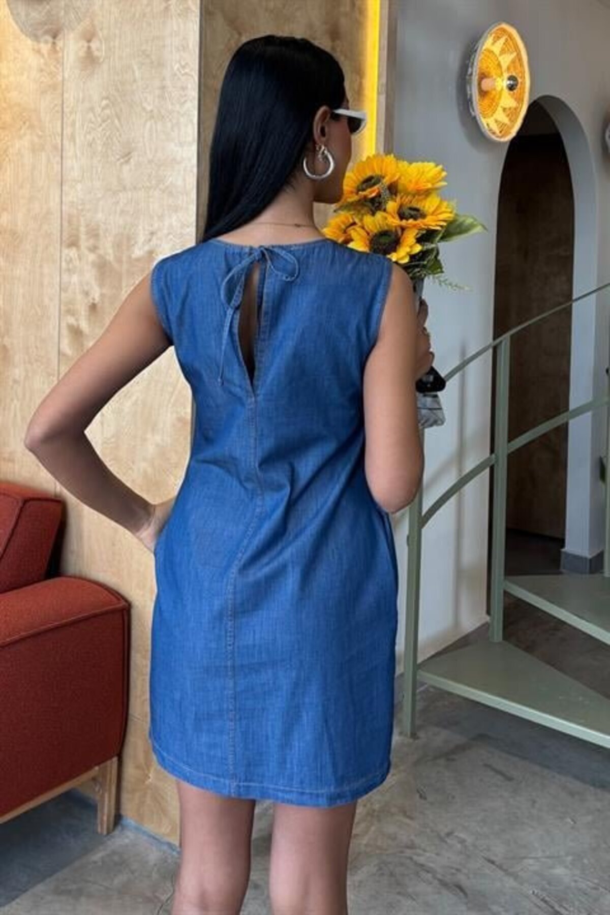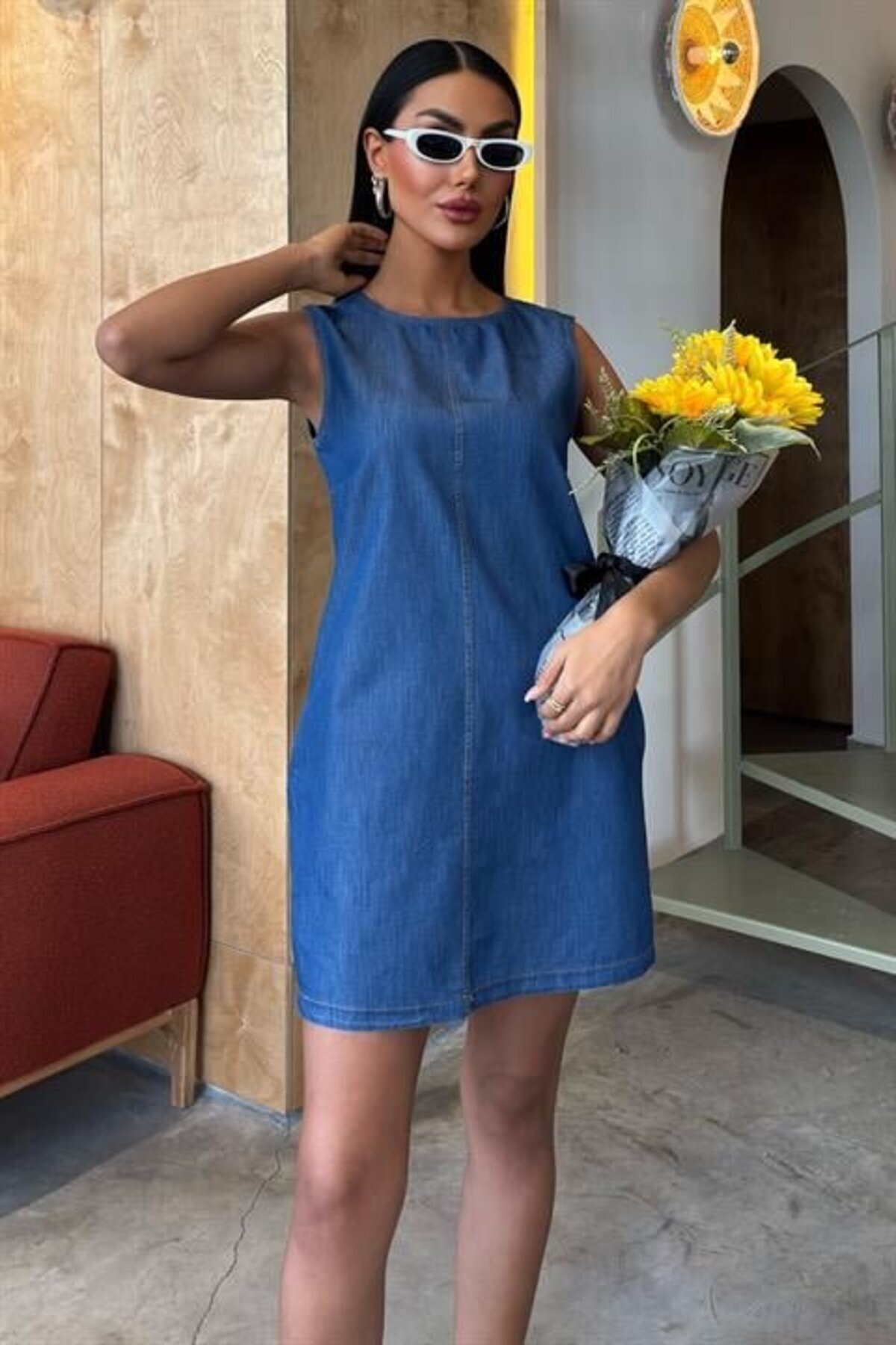 Kumaştan İmal Edilen Sırt Bağcıklı Elbise Kumaştan İmal Edilen Sırt Bağcıklı Elbise P50083S9901 XL