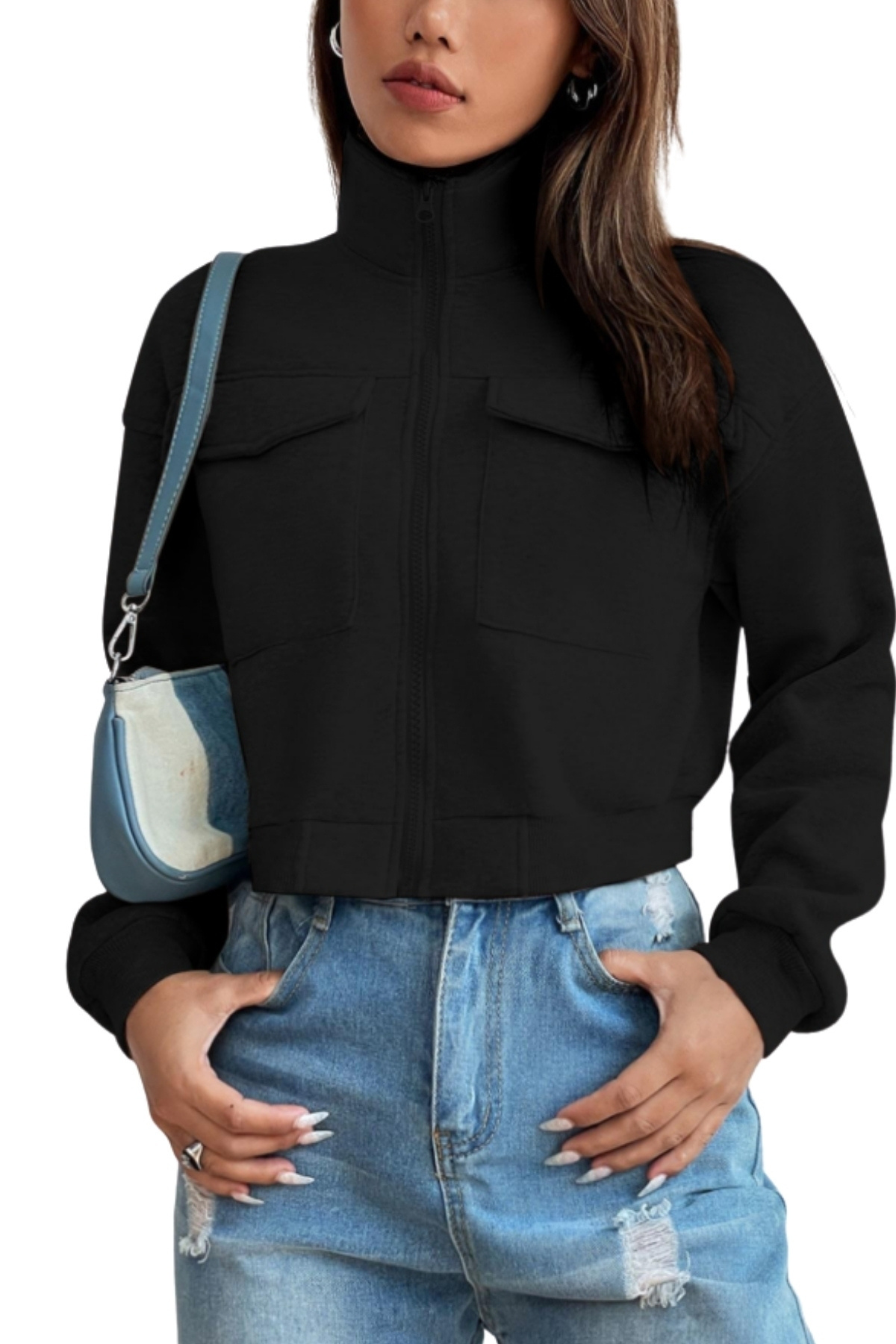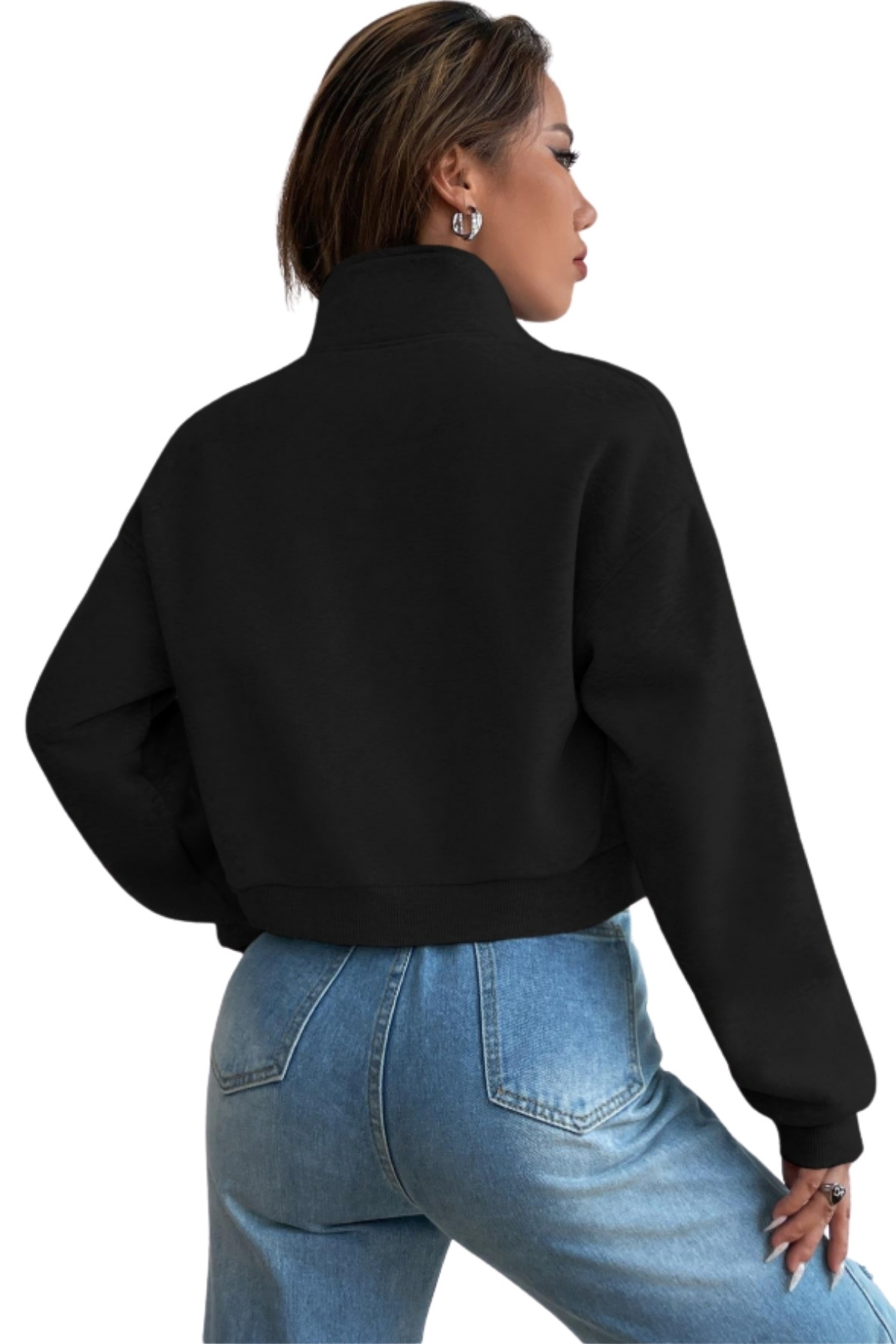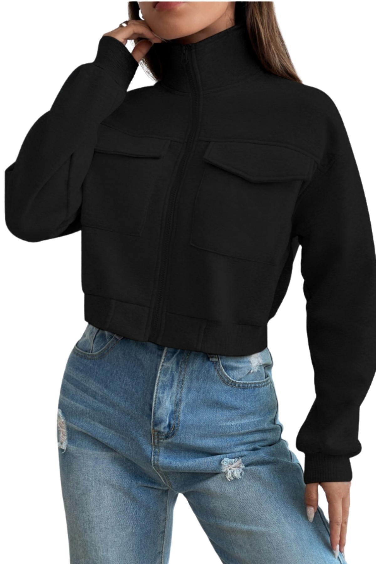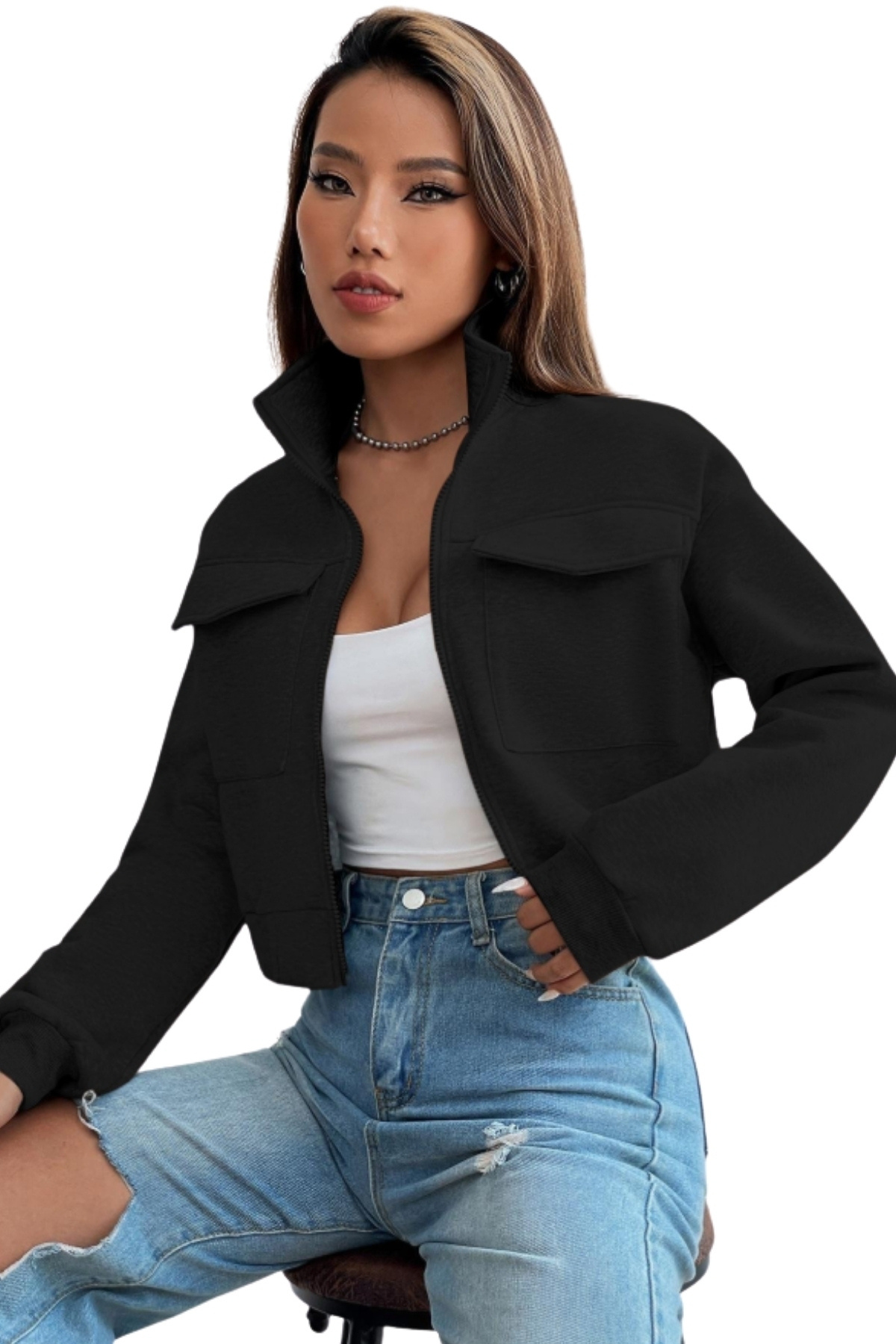 Kadın Dik Yaka Cepli Siyah Crop Ceket Kadın Dik Yaka Cepli Siyah Crop Ceket SYH-CRPCKTCPL XL