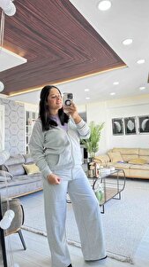Kadın Gri Kapşonlu Fermuarlı Hırka-Bol Kesim Rahat Eşofman Takım Kadın Gri Kapşonlu Fermuarlı Hırka-Bol Kesim Rahat Eşofman Takım Hırka1 XL