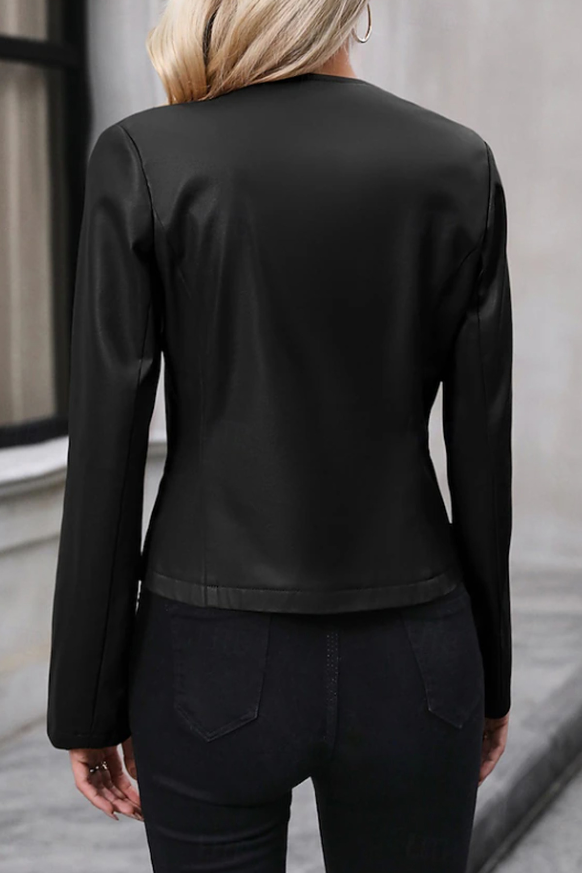 Yeni Sezon Düz Siyah Deri Ceket Yeni Sezon Düz Siyah Deri Ceket jgkadındetaysızdüzderi-4 3XL
