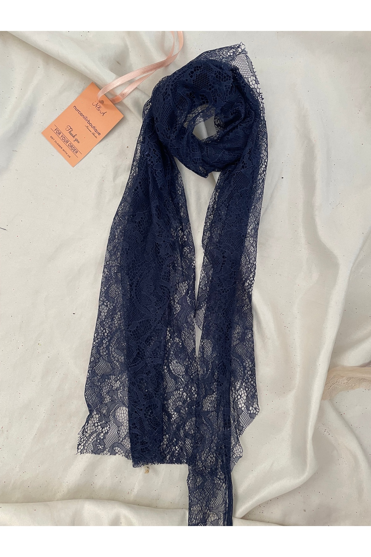 Lacivert Dantel Fular Lacivert Dantel Fular 739392-012929NAKS تک سایز