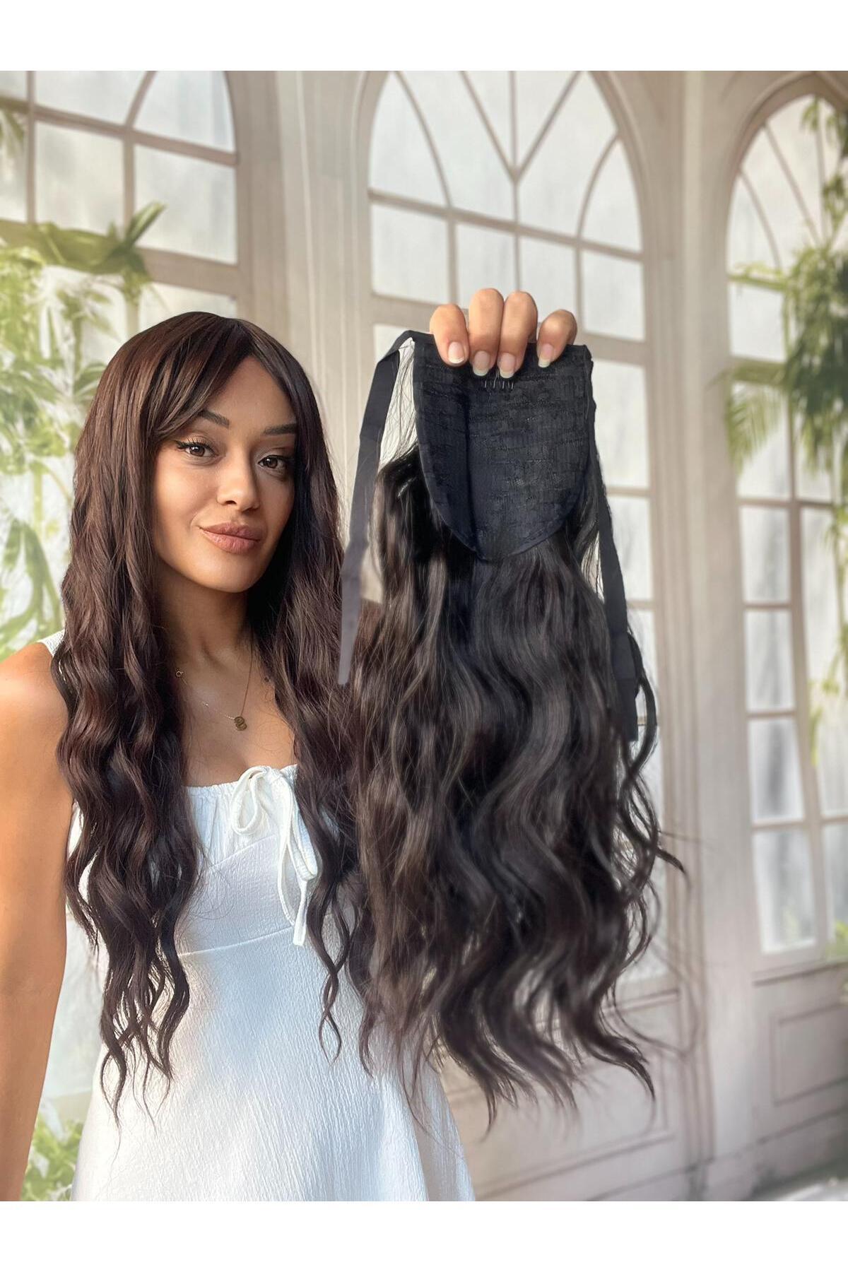 Bağcıklı At Kuyruğu Gerçek Saç Dokulu- Yandan dolamalı Takması çok kolay Bağcıklı At Kuyruğu Gerçek Saç Dokulu- Yandan dolamalı Takması çok kolay bat تک سایز