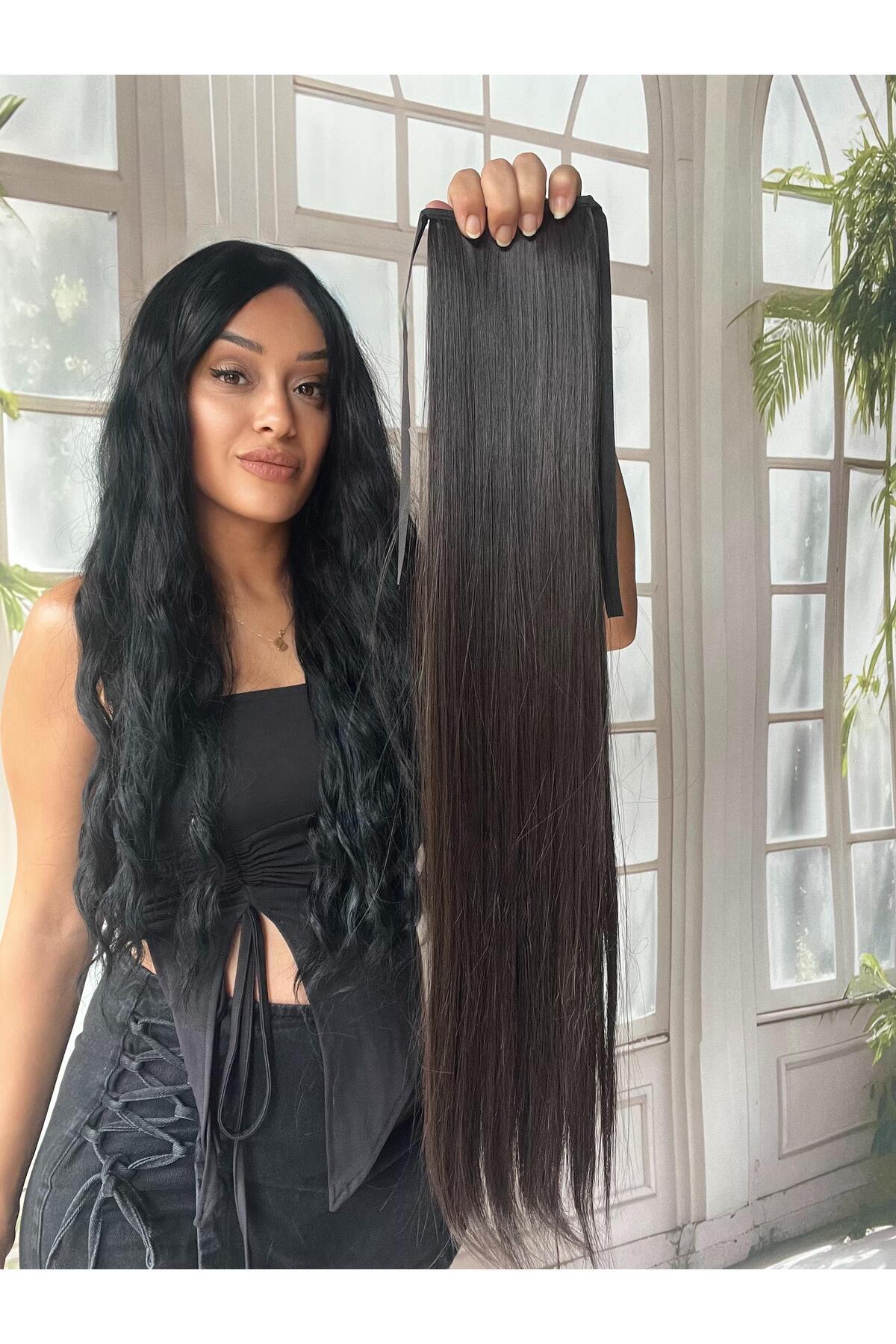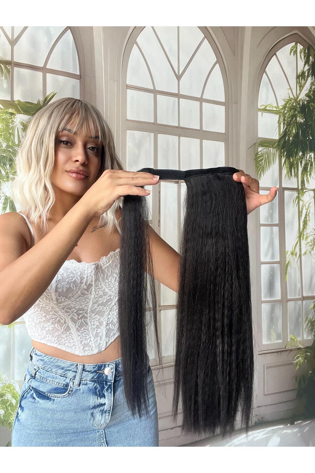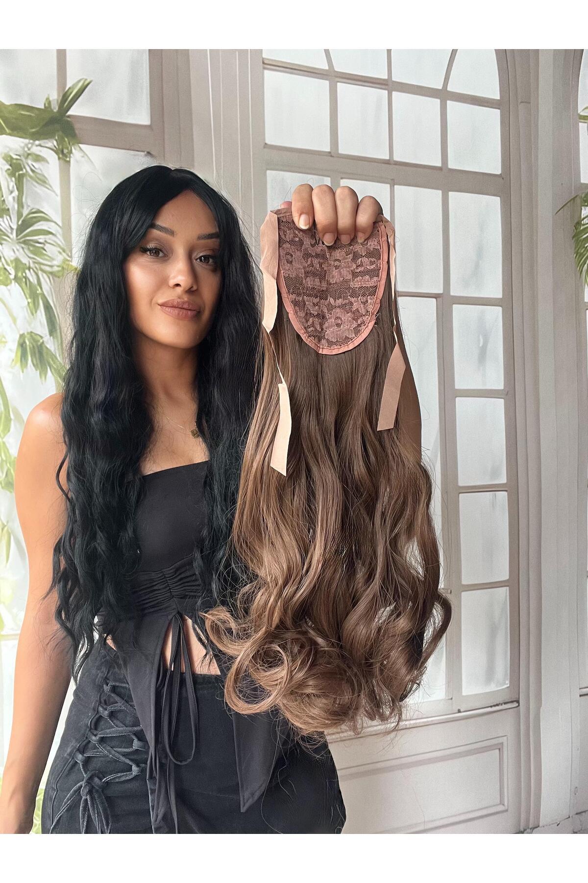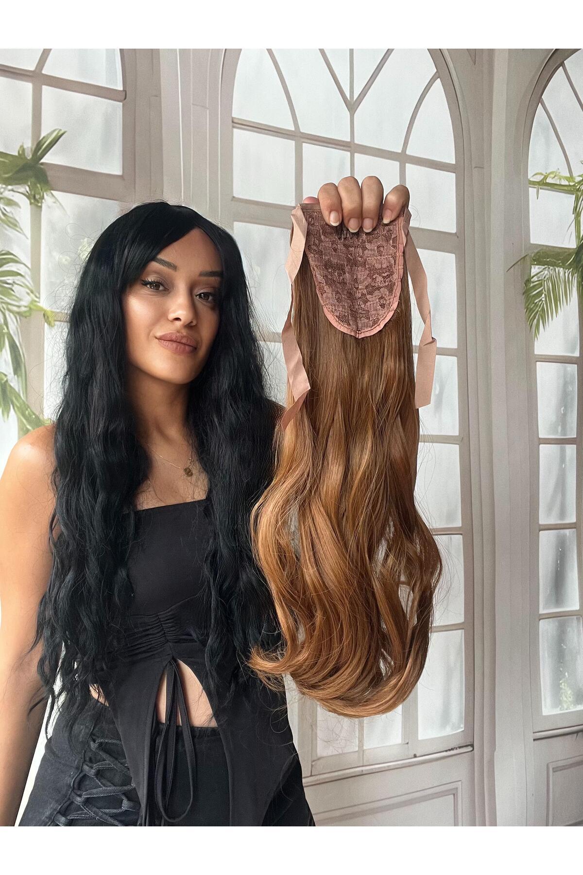 Bağcıklı At Kuyruğu Gerçek Saç Dokulu- Yandan dolamalı Takması çok kolay Bağcıklı At Kuyruğu Gerçek Saç Dokulu- Yandan dolamalı Takması çok kolay bat تک سایز
