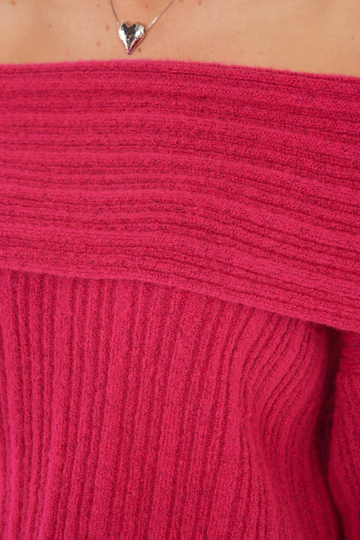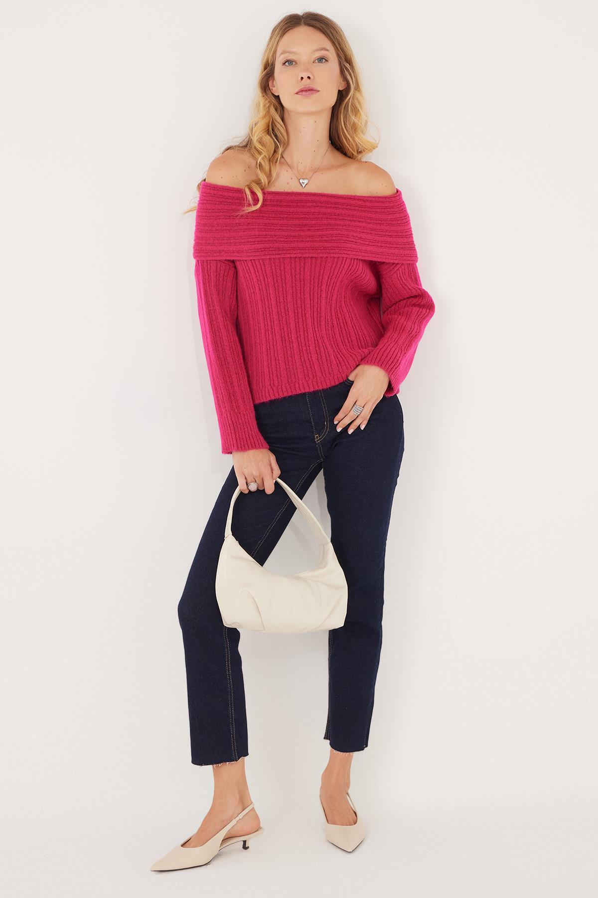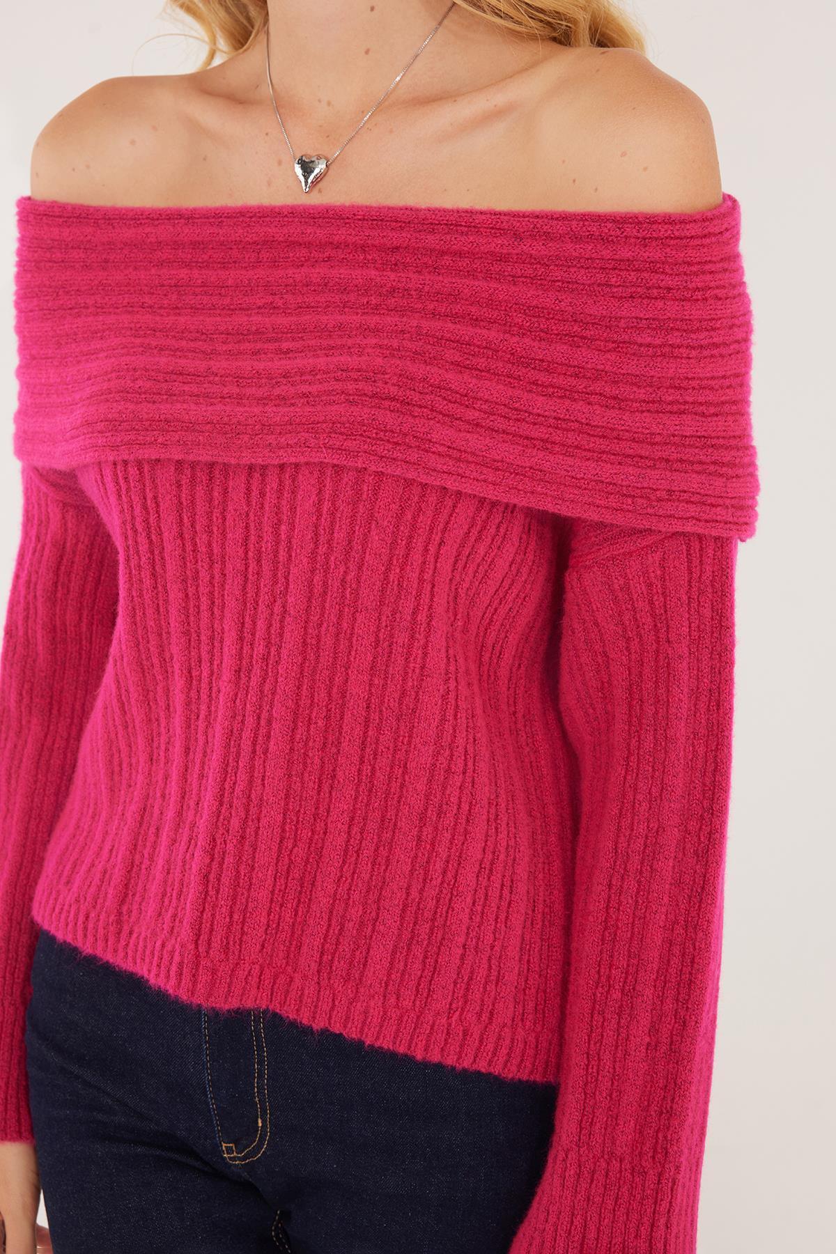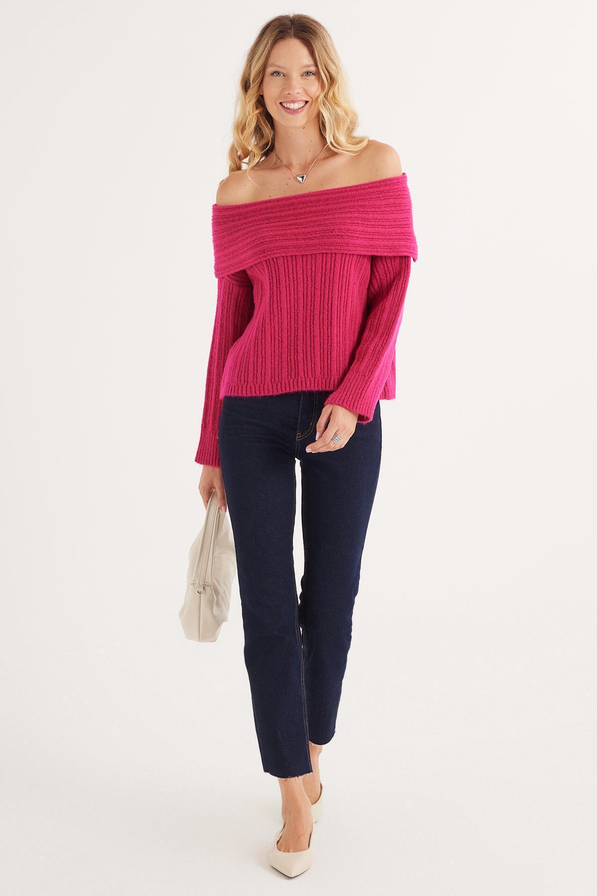Kadın Regular Fit Klasik Kesim Uzun Kollu Omzu Açık Fuşya Kazak Kadın Regular Fit Klasik Kesim Uzun Kollu Omzu Açık Fuşya Kazak BYKZ2522 Standart