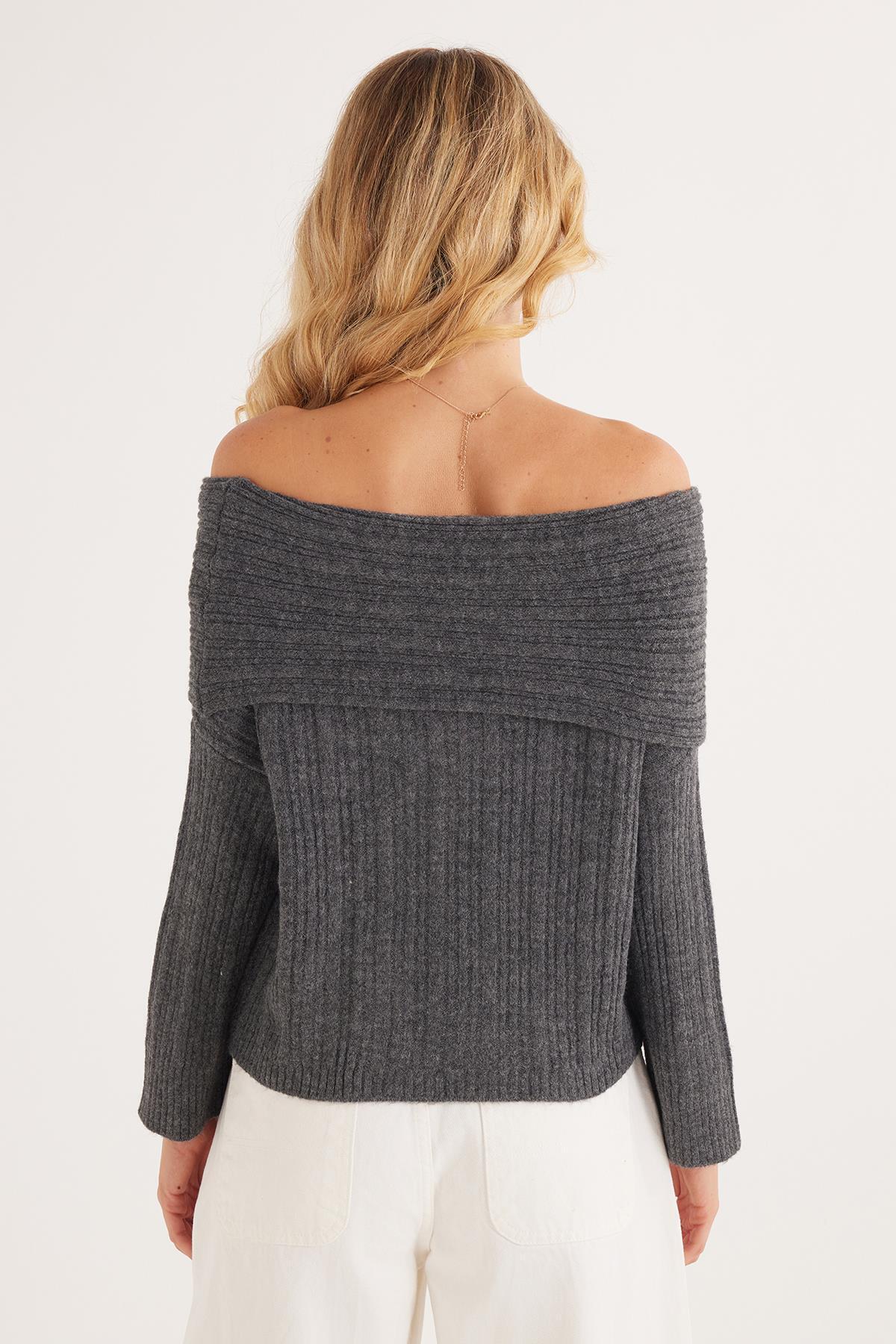 Kadın Regular Fit Klasik Kesim Uzun Kollu Omzu Açık Antrasit Kazak Kadın Regular Fit Klasik Kesim Uzun Kollu Omzu Açık Antrasit Kazak BYKZ2522 Standart