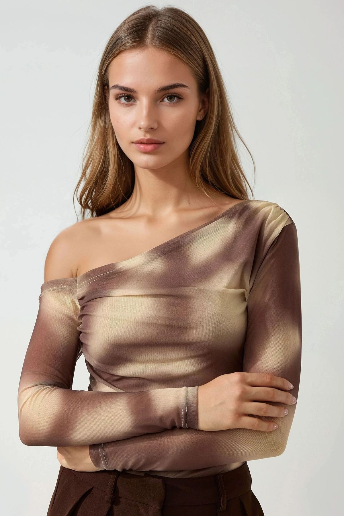 Asimetrik Yaka Astarlı Tül Bluz Asimetrik Yaka Astarlı Tül Bluz M2BSB46I XL