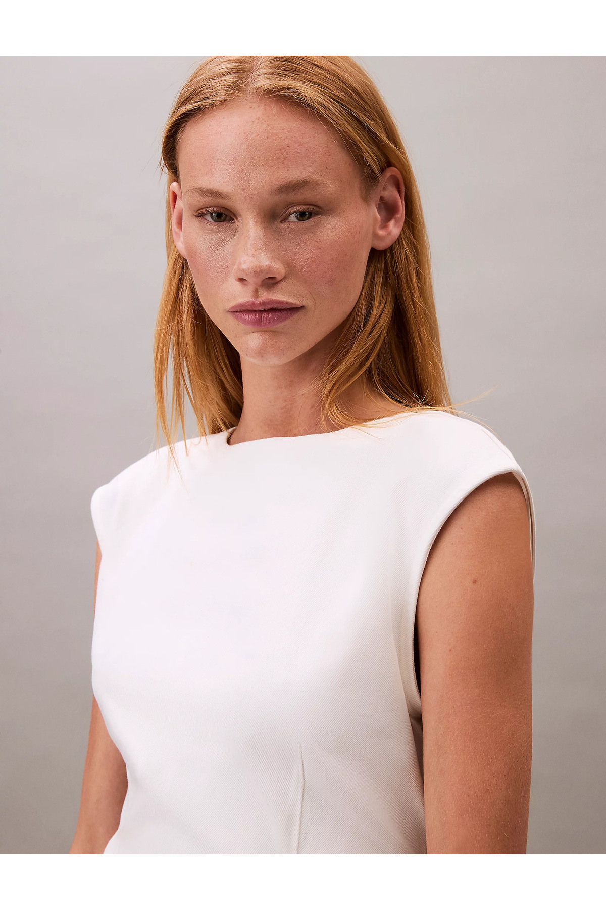 Kadın Yuvarlak Yaka Kısa Boy Düz Dokuma Kumaş Kolsuz Beyaz Elbise Kadın Yuvarlak Yaka Kısa Boy Düz Dokuma Kumaş Kolsuz Beyaz Elbise LV047C707G L