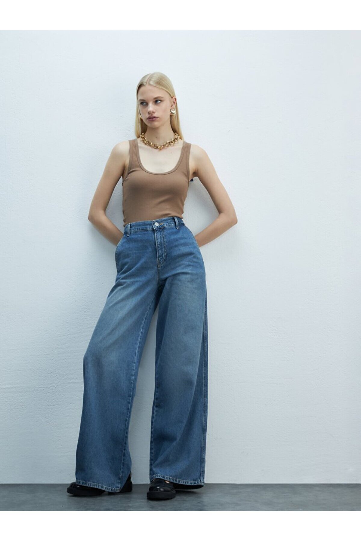 Marıam Geniş Paça Yüksek Bel Jean Pantolon Marıam Geniş Paça Yüksek Bel Jean Pantolon 010095184516163 34