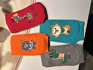 4'lü Hayvan Figürlü Renkli Kadın Penye Soket Çorap 4'lü Hayvan Figürlü Renkli Kadın Penye Soket Çorap renk1 36-41