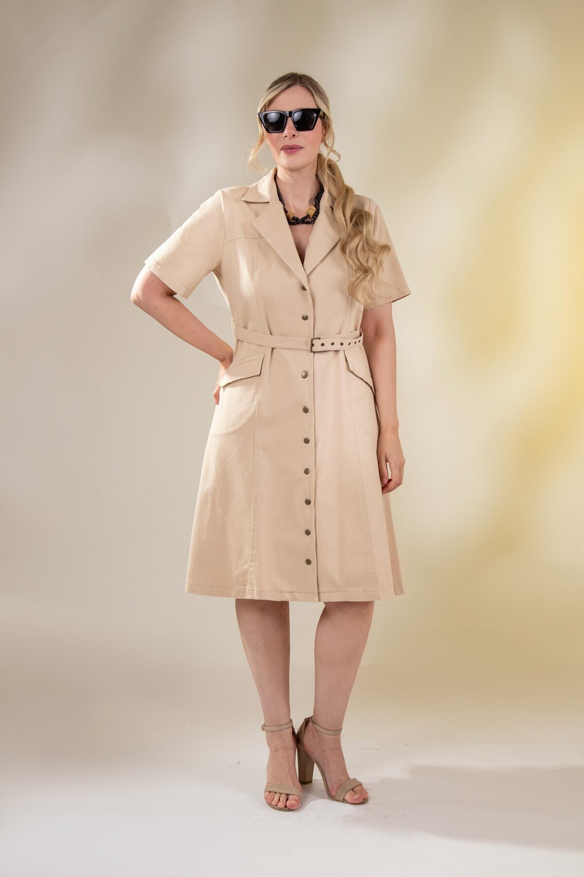 Büyük Beden Kemerli Gabardin Elbise Büyük Beden Kemerli Gabardin Elbise 1122538 52