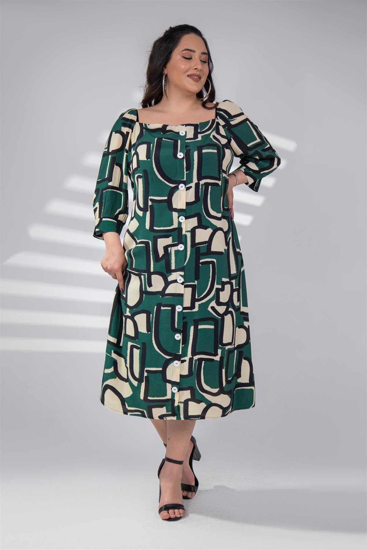 Büyük Beden Önü Düğmeli Uzun Elbise Büyük Beden Önü Düğmeli Uzun Elbise 333252 54