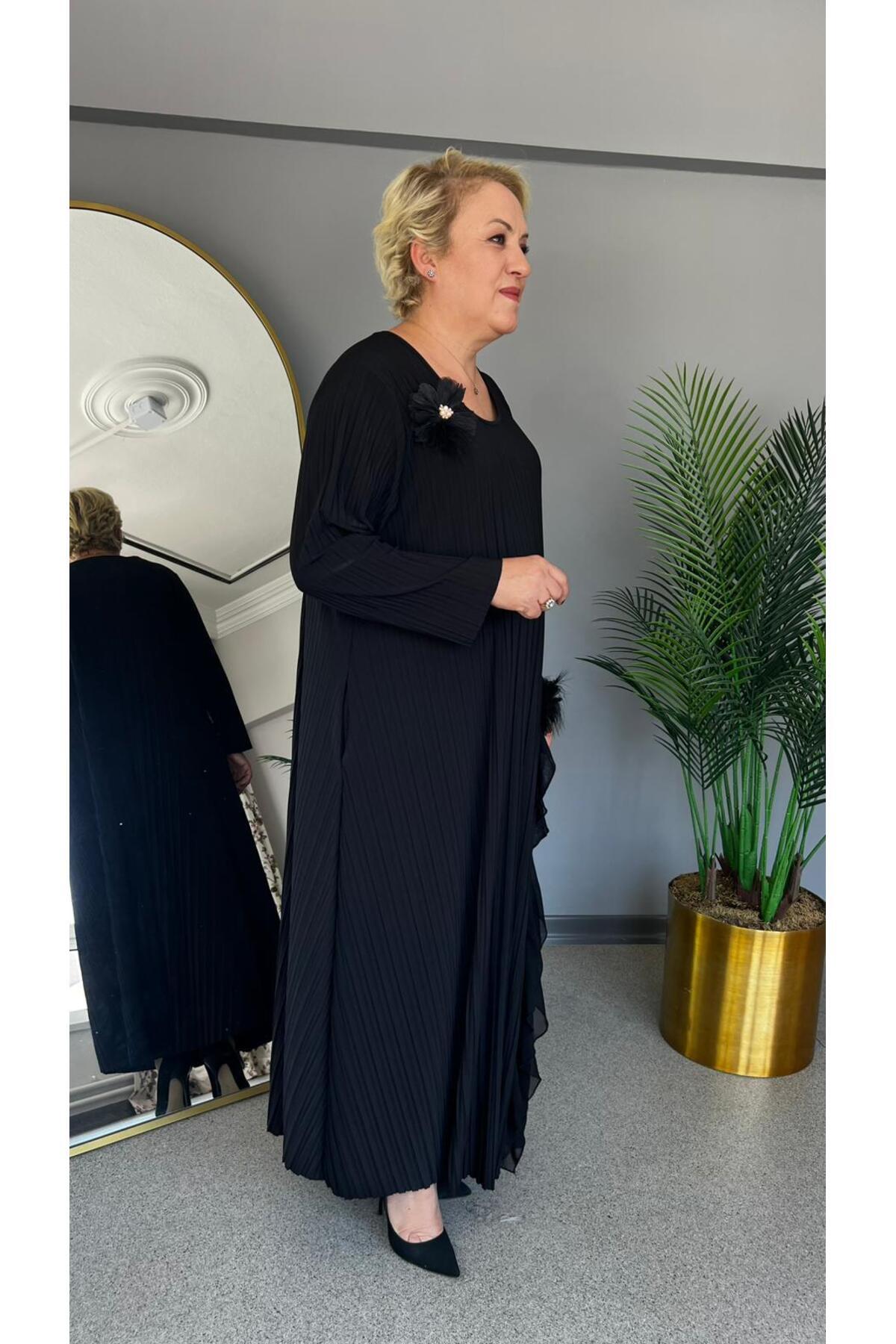 Büyük Beden Siyah Çiçek İşlemeli Elbise Büyük Beden Siyah Çiçek İşlemeli Elbise 25YELB-00189 2