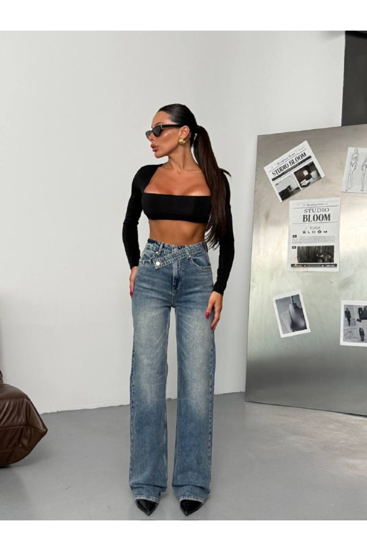 TREND ÖZEL TASARIM ÇAPRAZ KAPAMA BEL WİDE LEG PALAZZO COMFORT LYCRA DENİM JEAN PANTLON TREND ÖZEL TASARIM ÇAPRAZ KAPAMA BEL WİDE LEG PALAZZO COMFORT LYCRA DENİM JEAN PANTLON ELLAKIŞ L