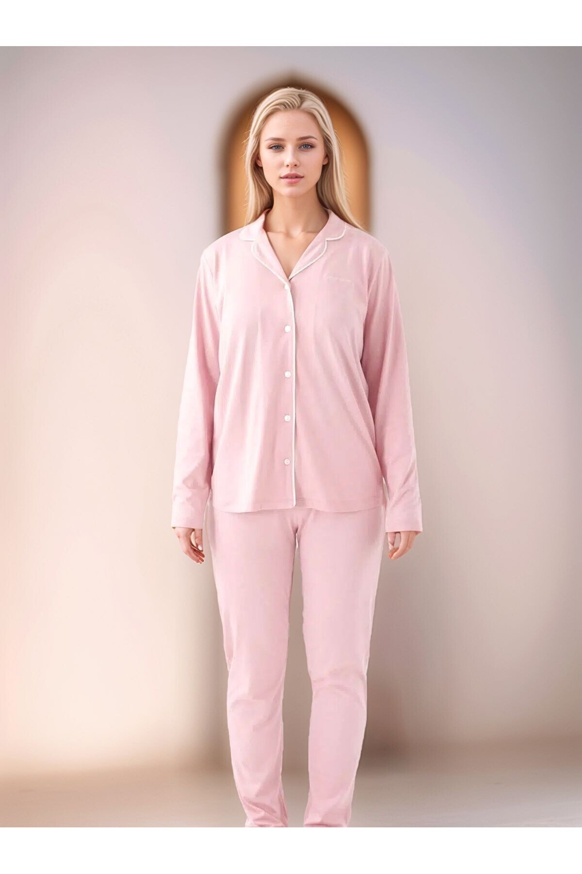 Kadın Giyim Pamuklu Modal Uzun Kollu Gömlek Pijama Takımı (2 Adet Hediye Çorap) OL.PC.7717.001 Kadın Giyim Pamuklu Modal Uzun Kollu Gömlek Pijama Takımı (2 Adet Hediye Çorap) OL.PC.7717.001 XL