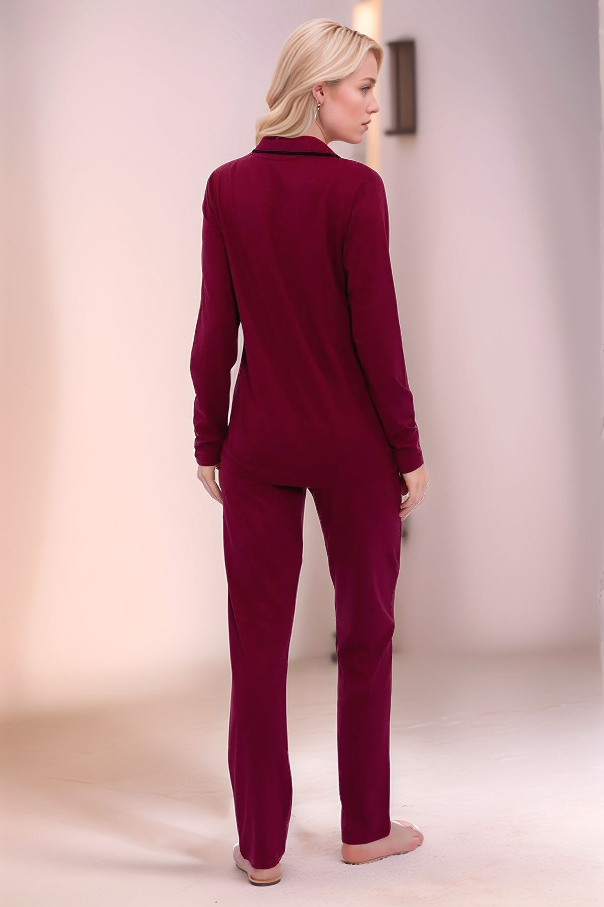Kadın Giyim Pamuklu Modal Uzun Kollu Gömlek Pijama Takımı (2 Adet Hediye Çorap) OL.PC.7717.001 Kadın Giyim Pamuklu Modal Uzun Kollu Gömlek Pijama Takımı (2 Adet Hediye Çorap) OL.PC.7717.001 XL