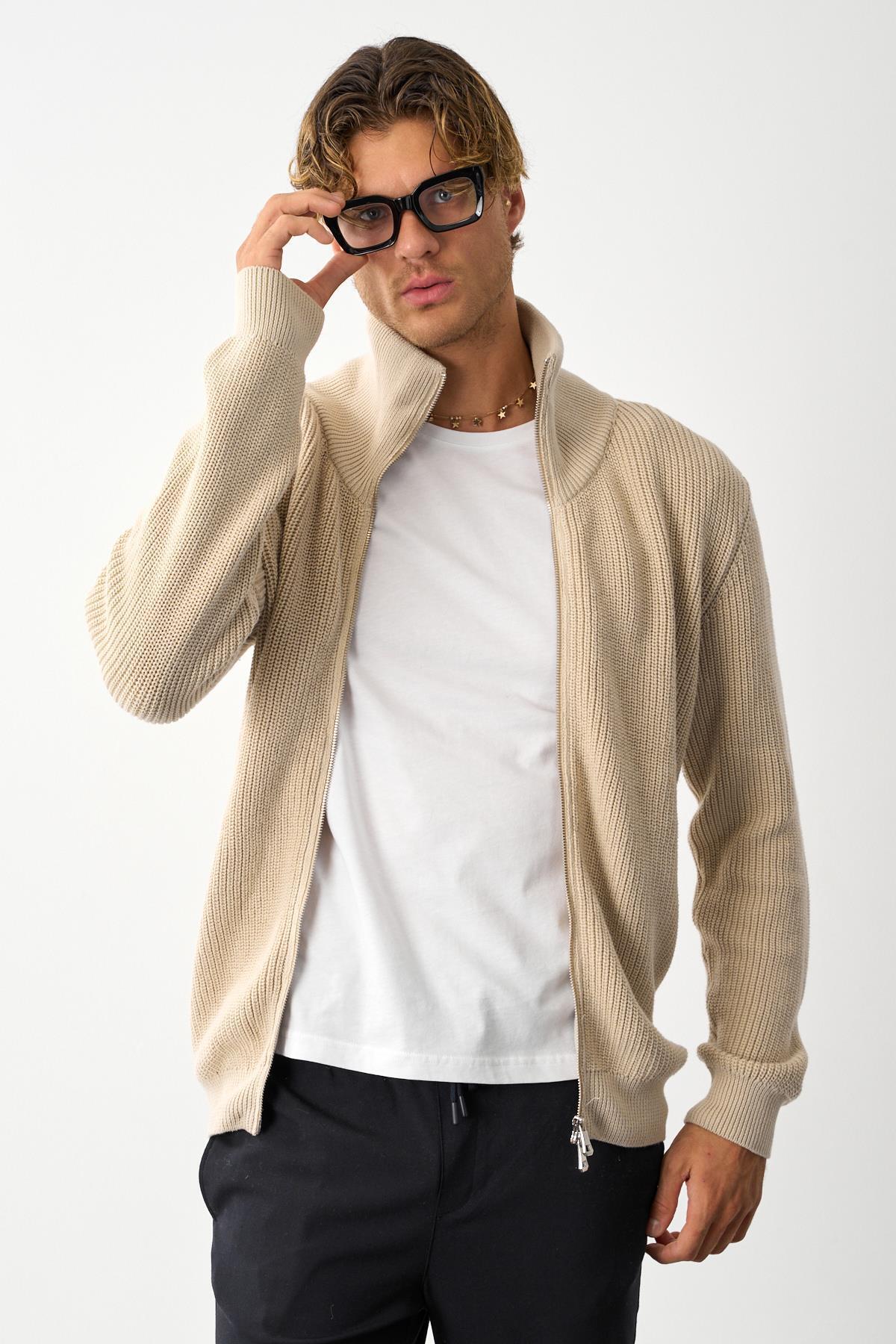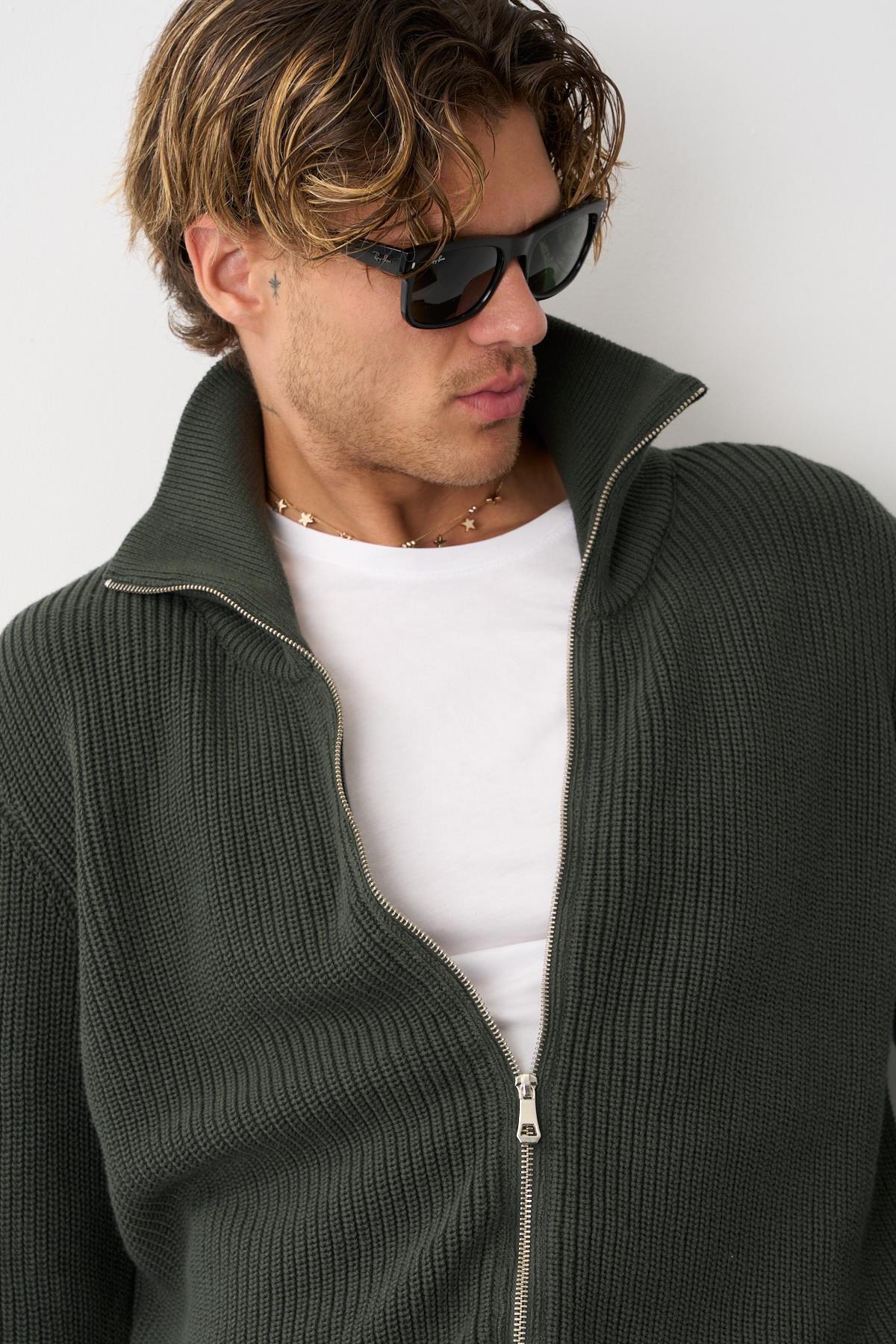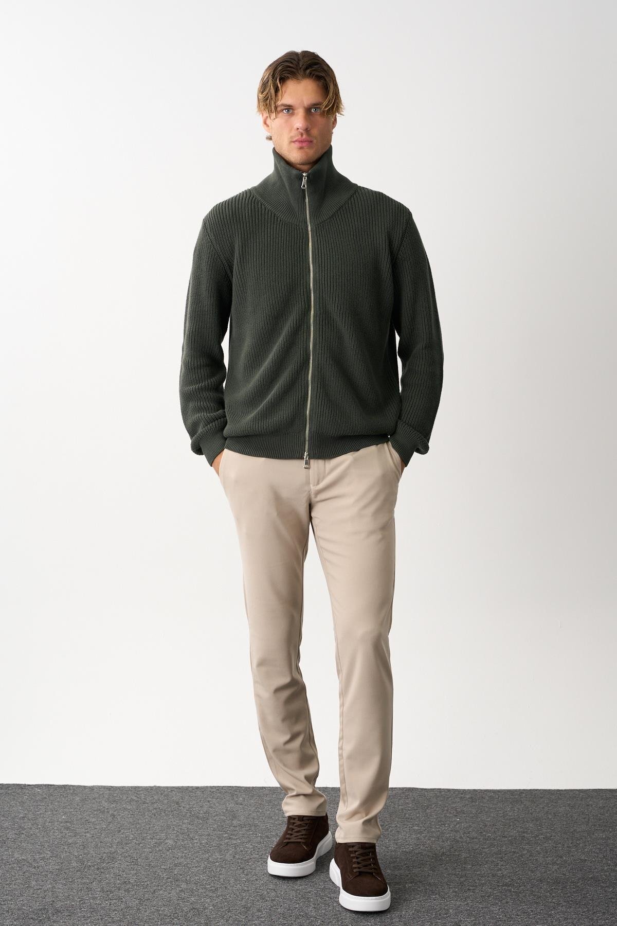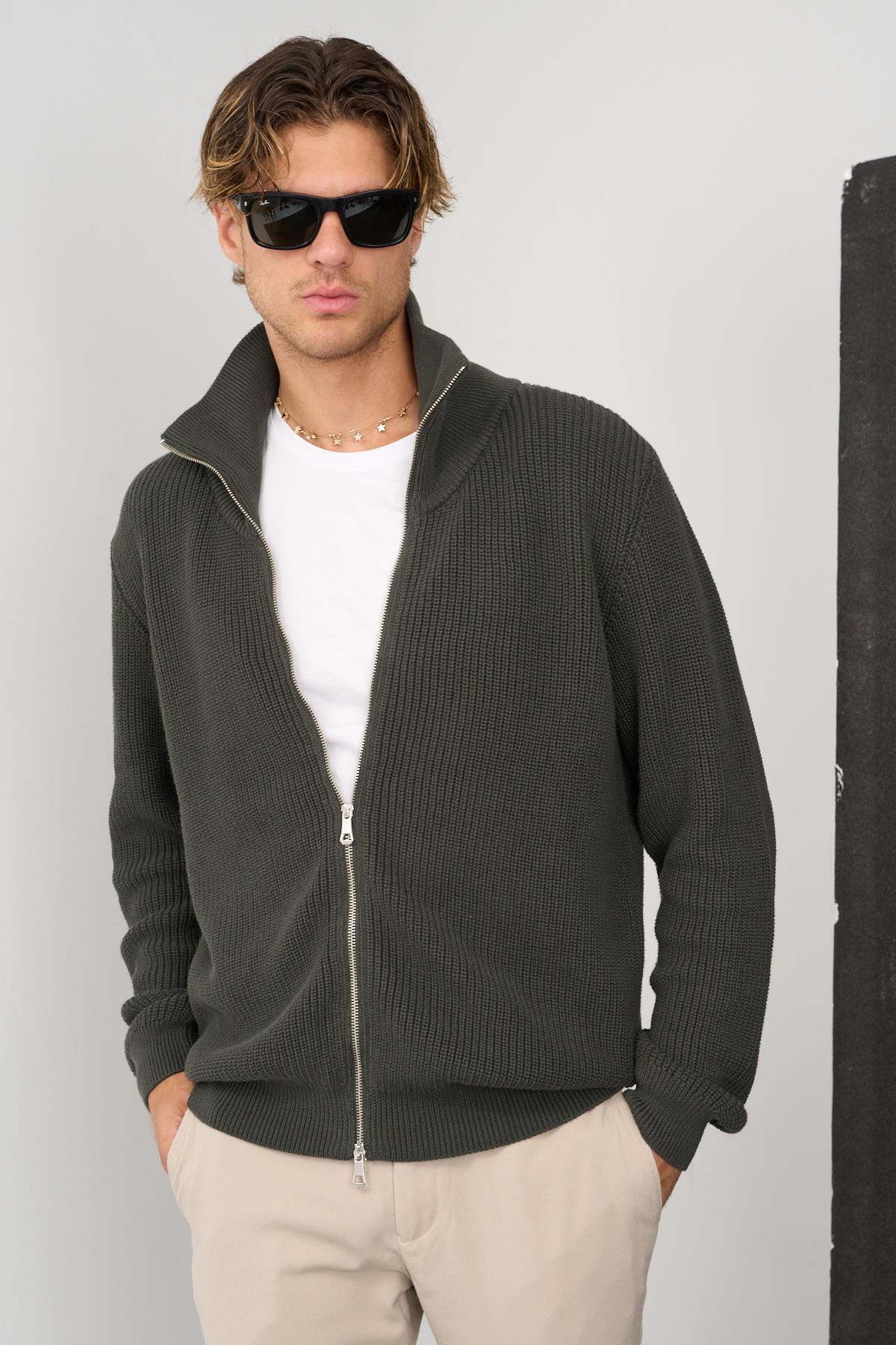 Erkek Regular Fit Selanik Örgü Pamuklu Fermuarlı Haki Triko Hırka Erkek Regular Fit Selanik Örgü Pamuklu Fermuarlı Haki Triko Hırka MARS38 4XL