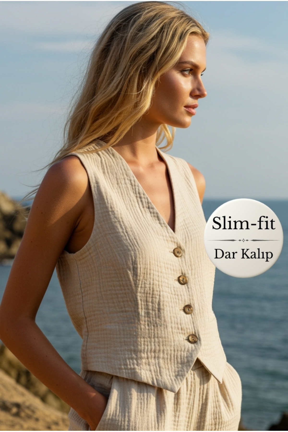 Organik Müslin Yelek - 2 Kat Müslin Naturel Doğal - Naturel Doğal-oeko Tex Sertifikalı Kumaş- YENİ Organik Müslin Yelek - 2 Kat Müslin Naturel Doğal - Naturel Doğal-oeko Tex Sertifikalı Kumaş- YENİ Yelek-düğmeli XL