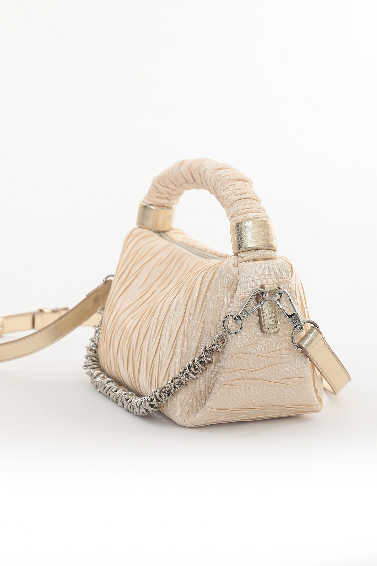 Ekru Kadın Zincirli Büzgü Saplı El Ve Omuz Çantası Ekru Kadın Zincirli Büzgü Saplı El Ve Omuz Çantası LU1901 تک سایز