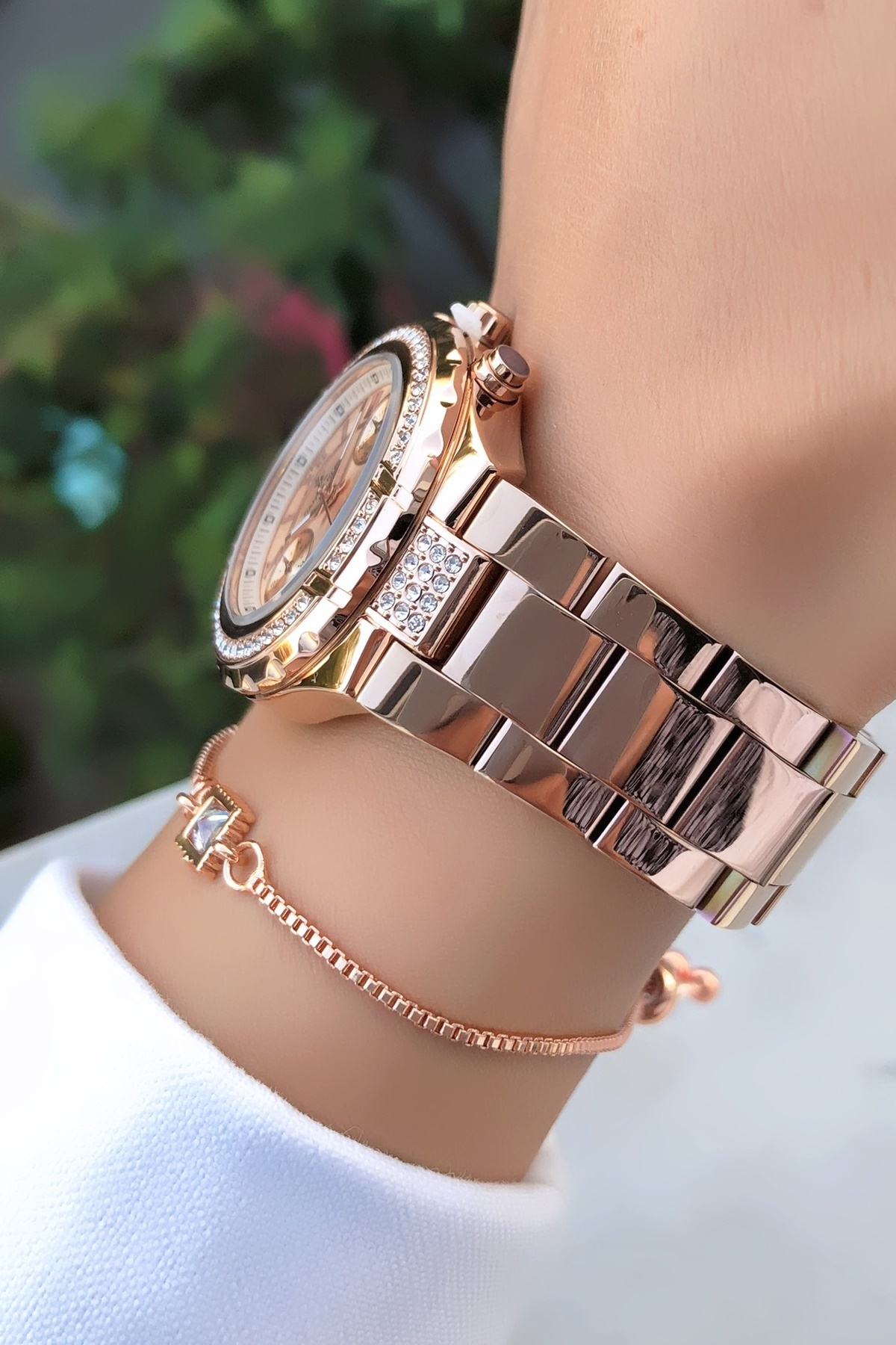 Orijinal Kadın Kol Saati Taşlı Rose Gold Çelik Kordon Bileklik Hediyeli Orijinal Kadın Kol Saati Taşlı Rose Gold Çelik Kordon Bileklik Hediyeli 45thgf412558 تک سایز