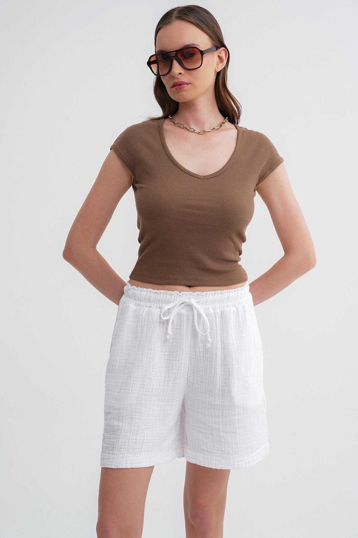 Bej Keten Karışımlı Mini Şort Bej Keten Karışımlı Mini Şort LABKKMS XL