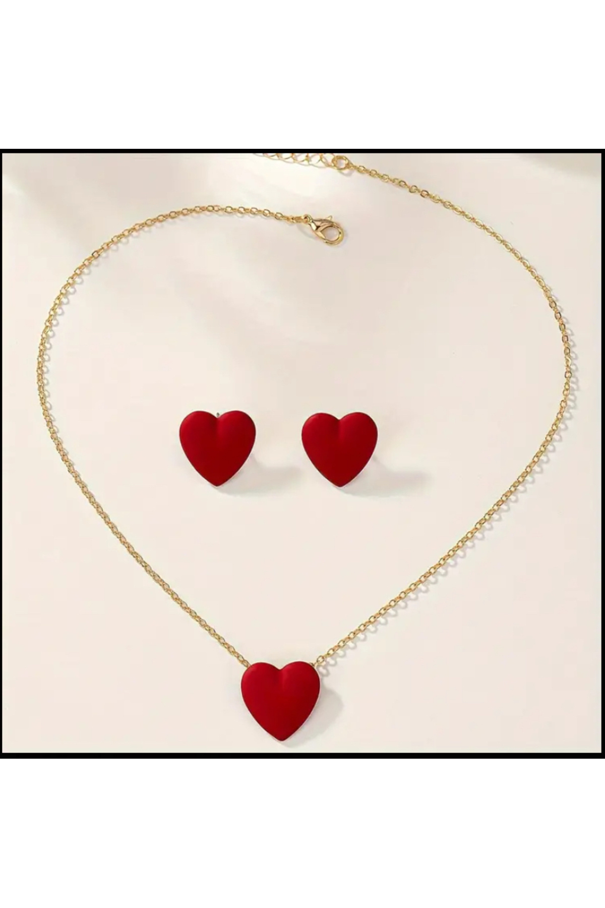 Altın Renk Zincirli Kırmızı Kalp Kolye ve Küpe Seti – Romantik Tasarım Altın Renk Zincirli Kırmızı Kalp Kolye ve Küpe Seti – Romantik Tasarım RMKLPFK تک سایز