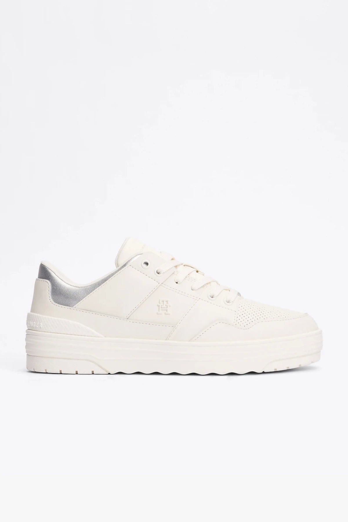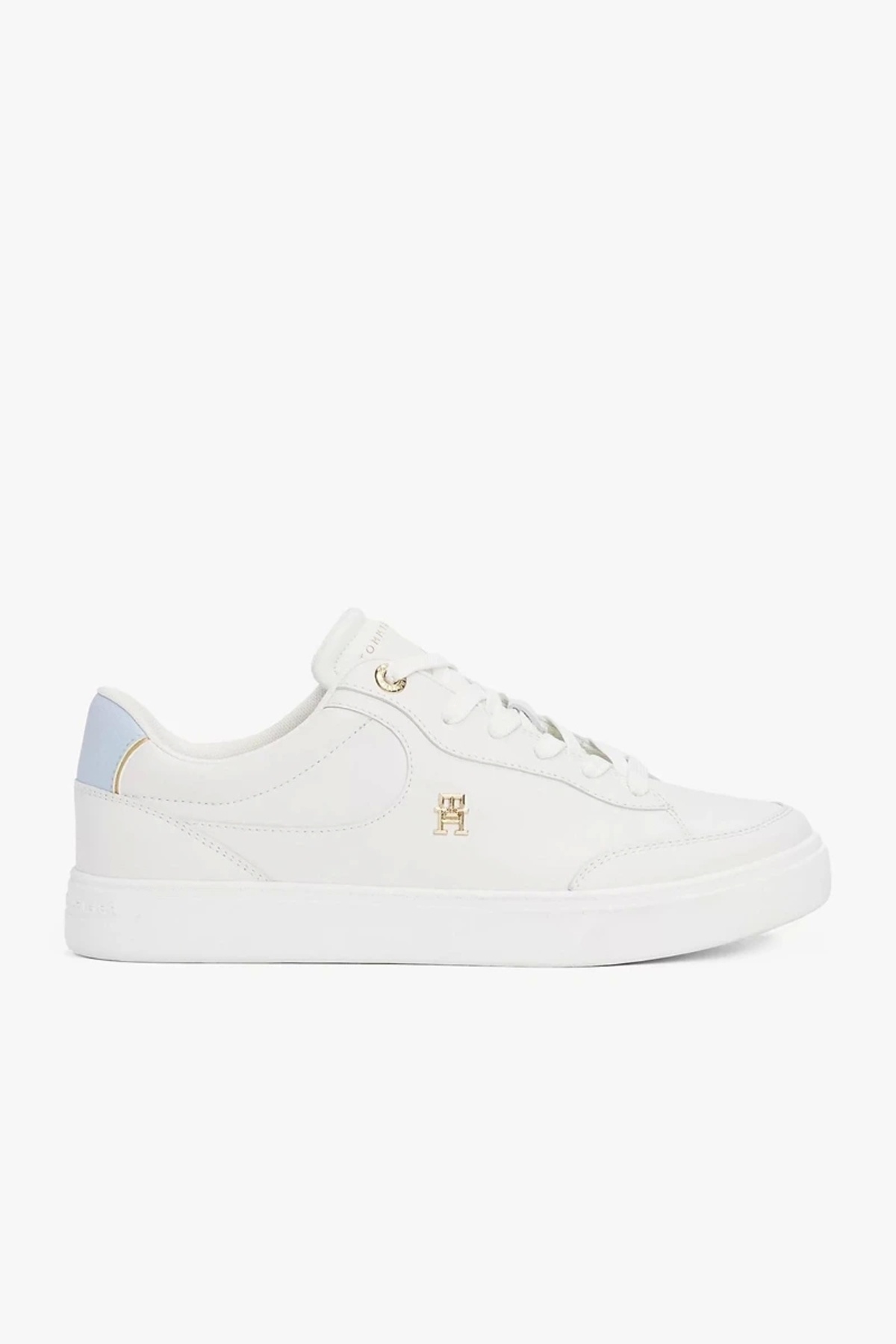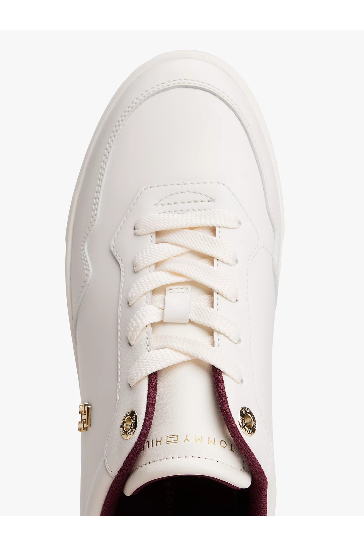 Kadın TH Monogram Plaque Court Sneakers - Beyaz/Bordo Kadın TH Monogram Plaque Court Sneakers - Beyaz/Bordo FW0FW08680 40