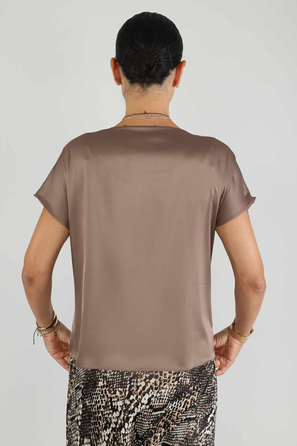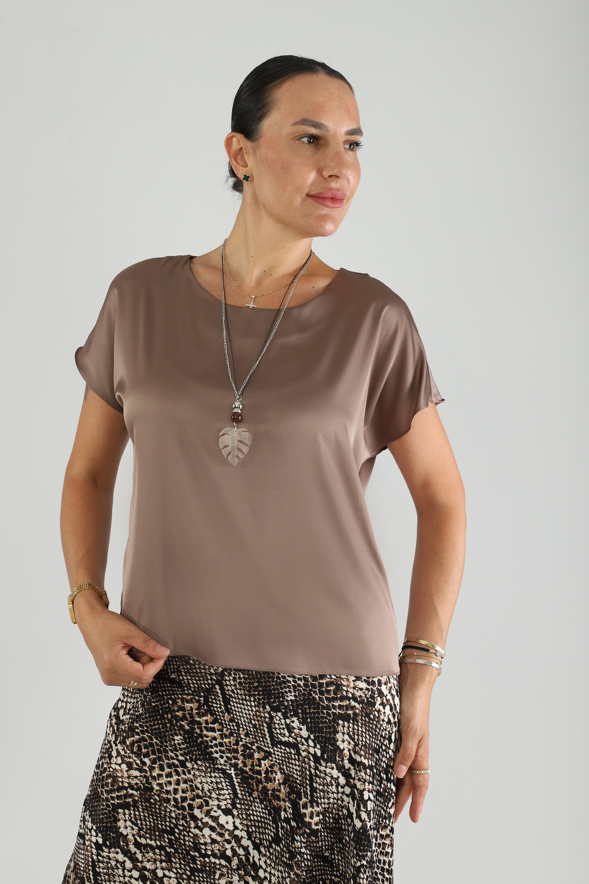 Kadın Klasik Kolye Aksesuarlı Kısa Kollu Saten Bluz Kadın Klasik Kolye Aksesuarlı Kısa Kollu Saten Bluz DE3350 42