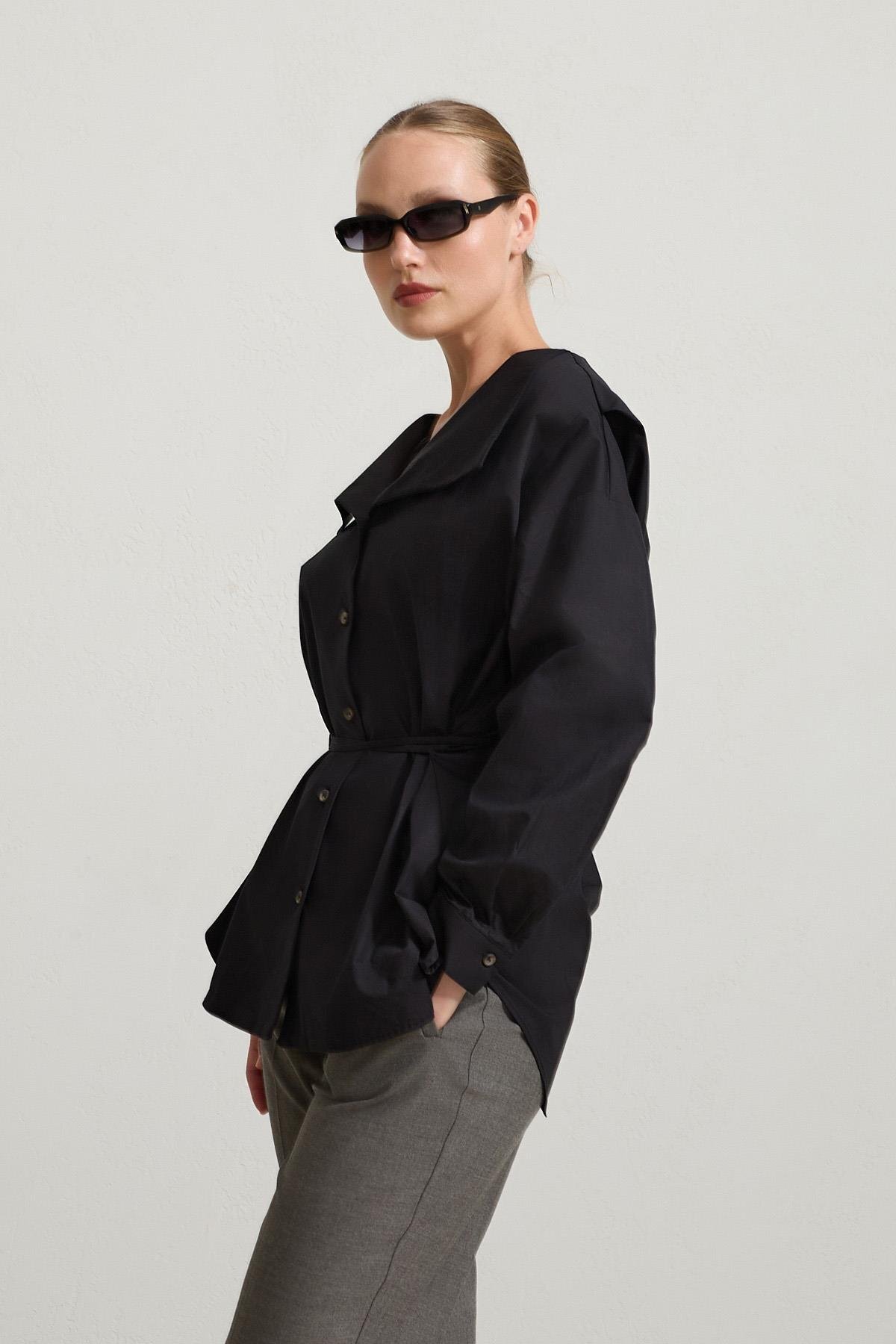 Siyah %100 Pamuklu Yaka Detaylı Gömlek Siyah %100 Pamuklu Yaka Detaylı Gömlek ST20250W55709001 XL