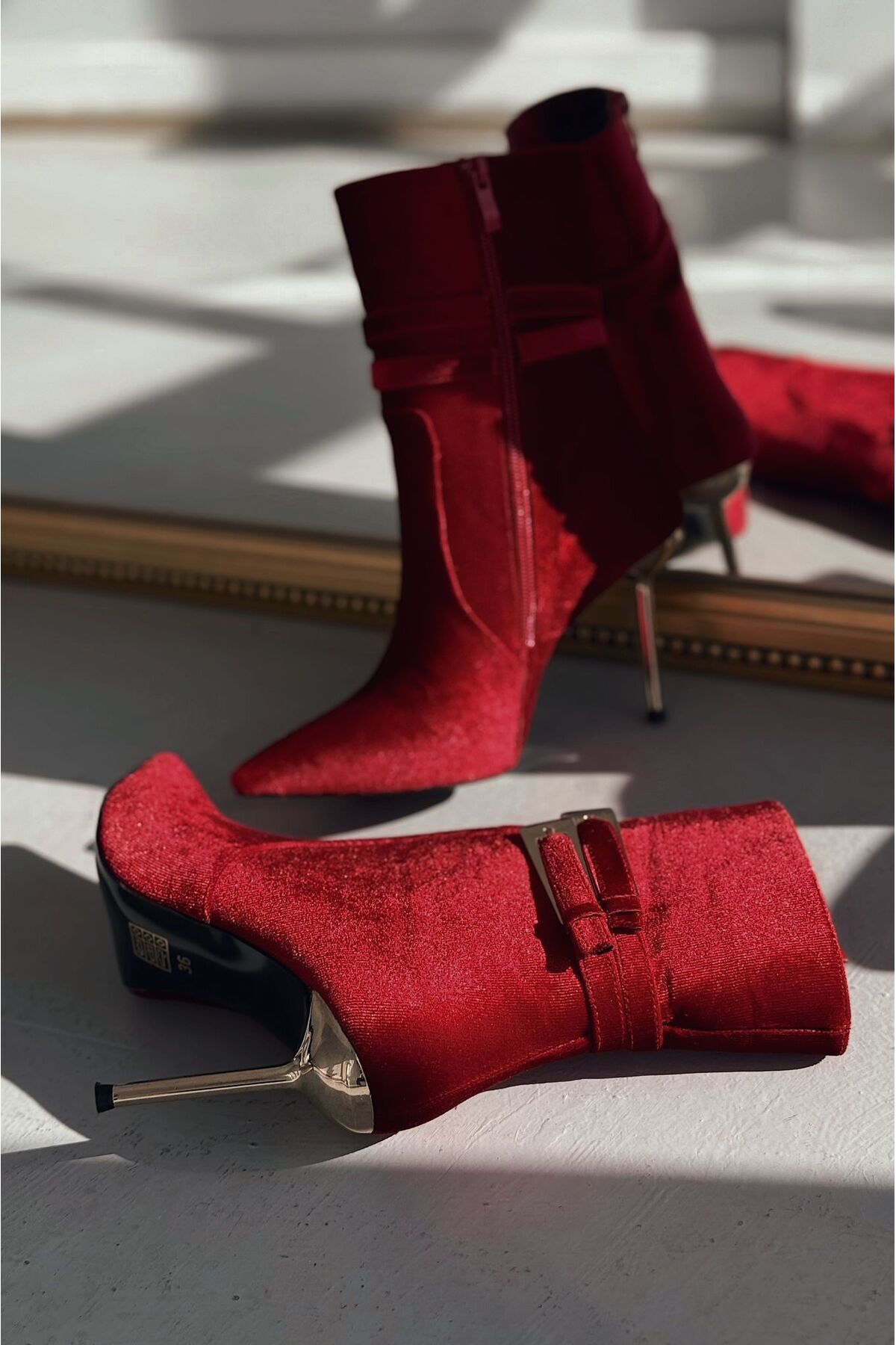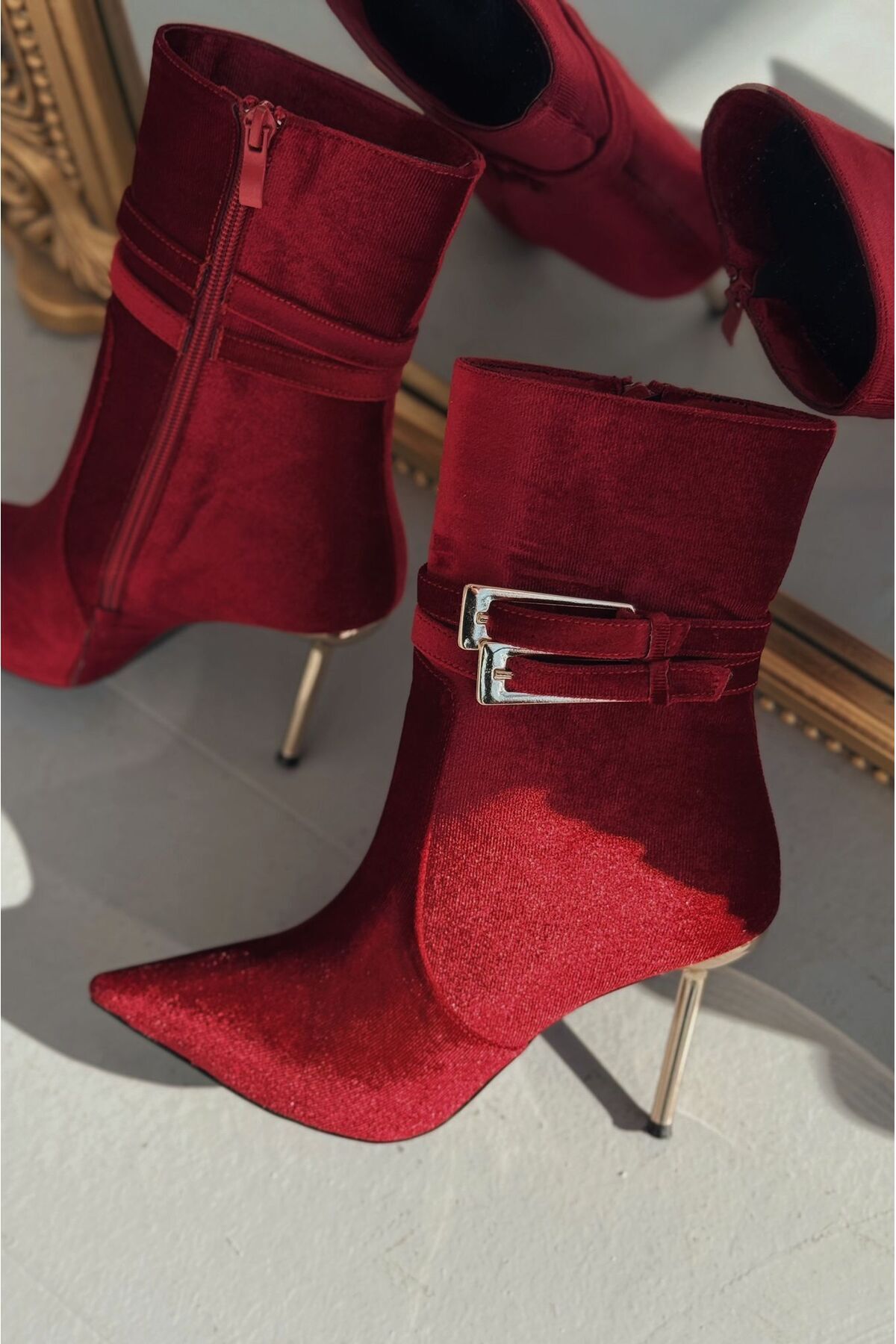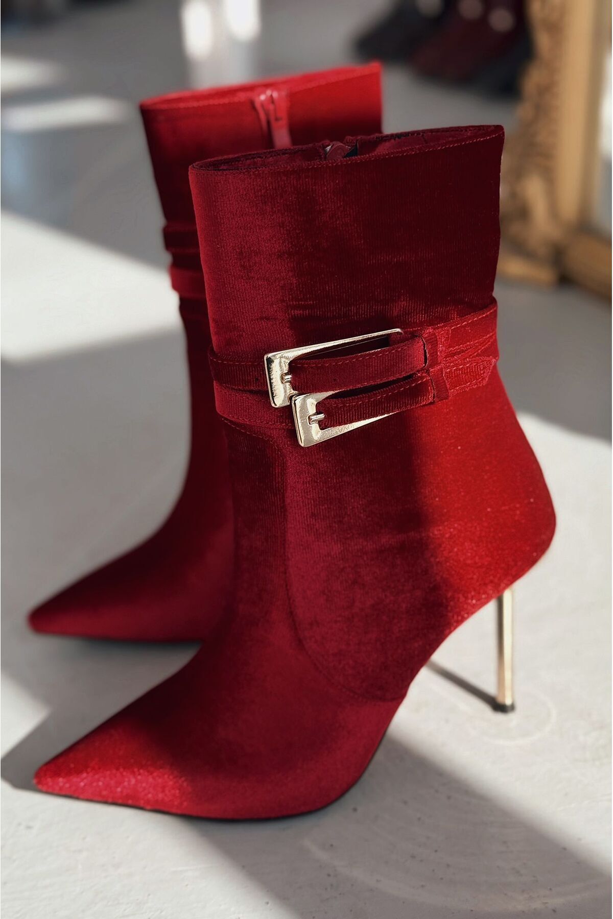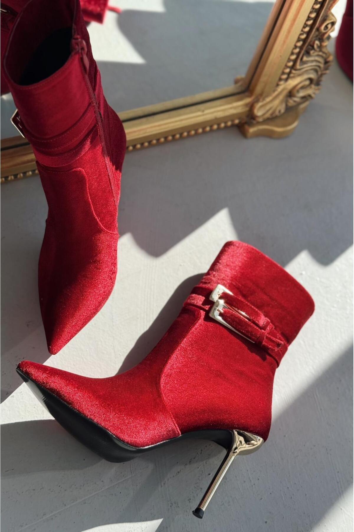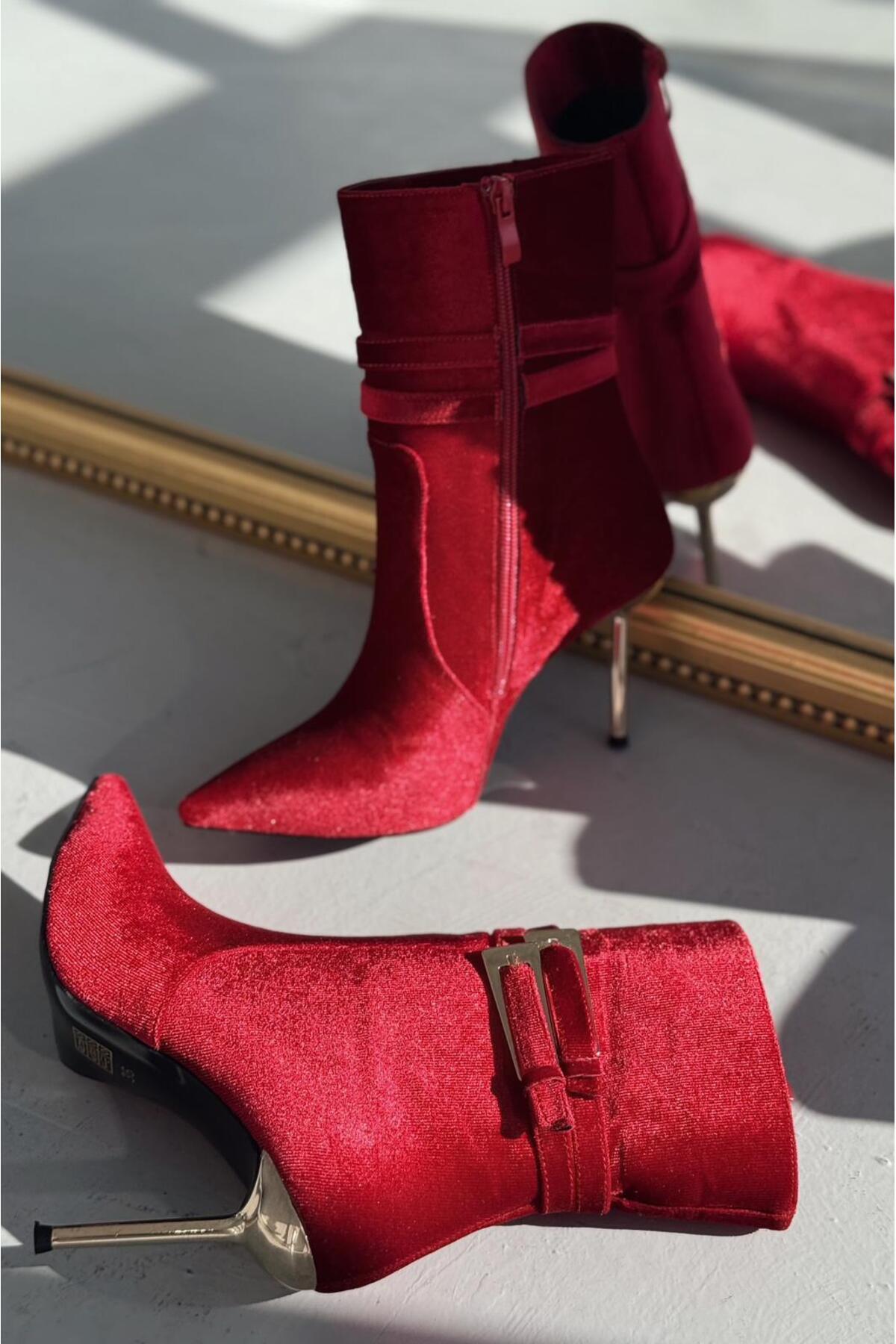 Calindo Kadife Toka Detaylı Kırmızı Kadın Topuklu Bot Calindo Kadife Toka Detaylı Kırmızı Kadın Topuklu Bot ILSY-6000 40