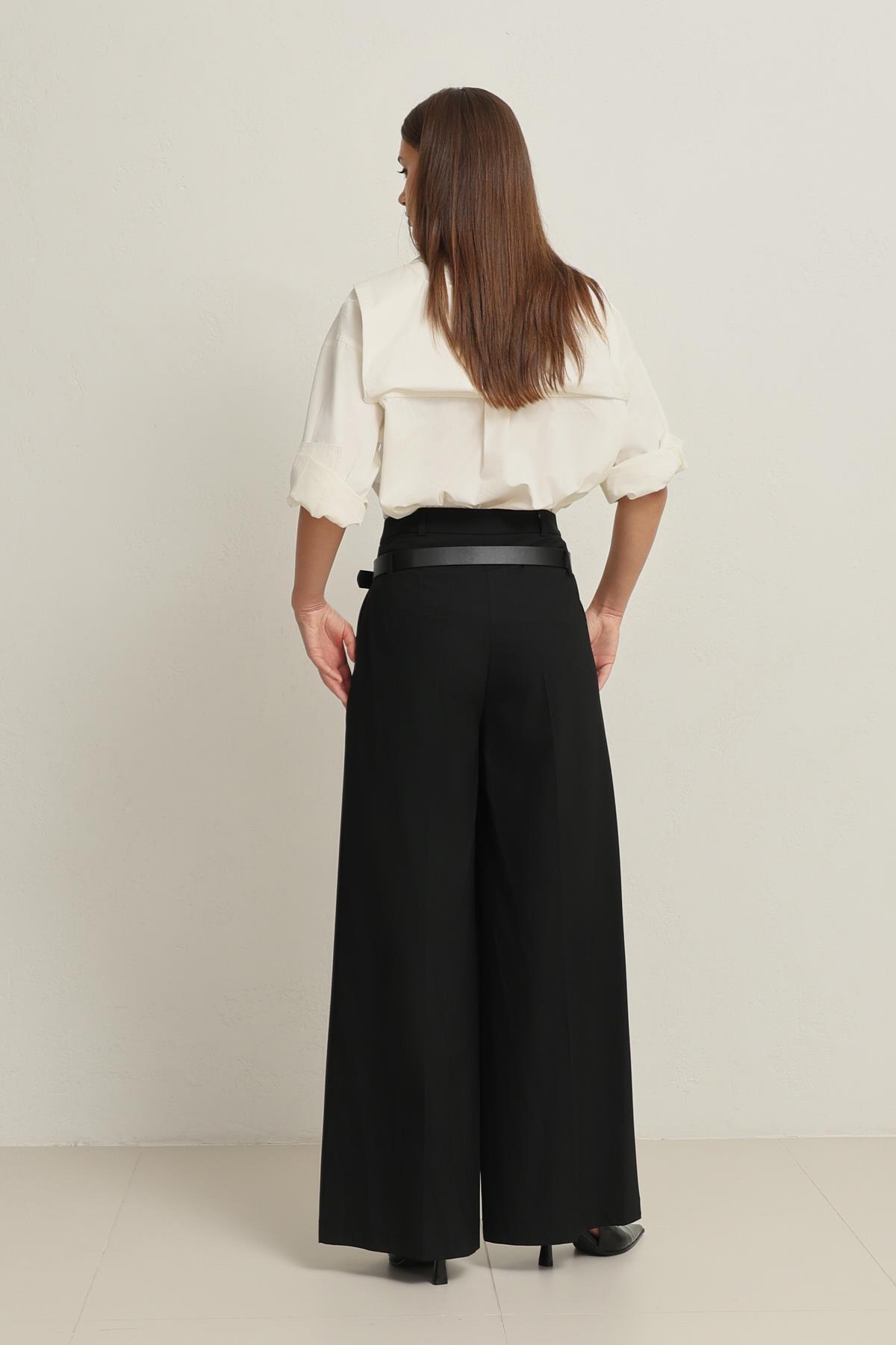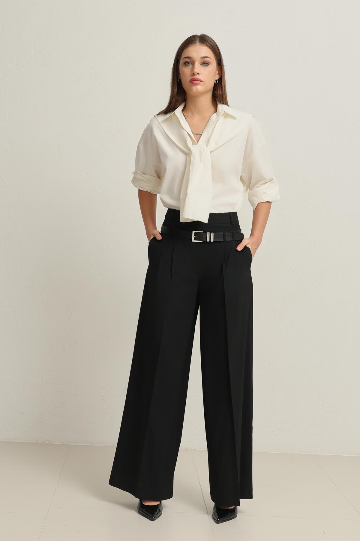 Siyah Pile Detaylı Ve Kemerli Rahat Kesim Geniş Paça Pantolon Siyah Pile Detaylı Ve Kemerli Rahat Kesim Geniş Paça Pantolon ST20260W20139201 XL