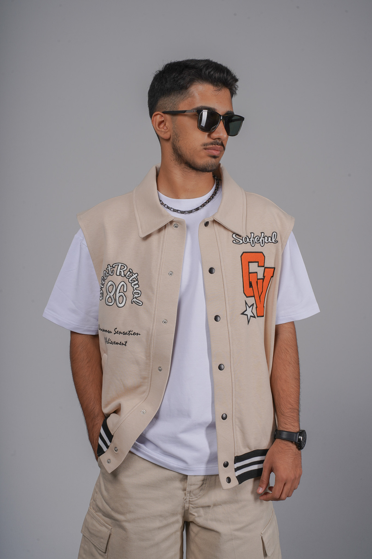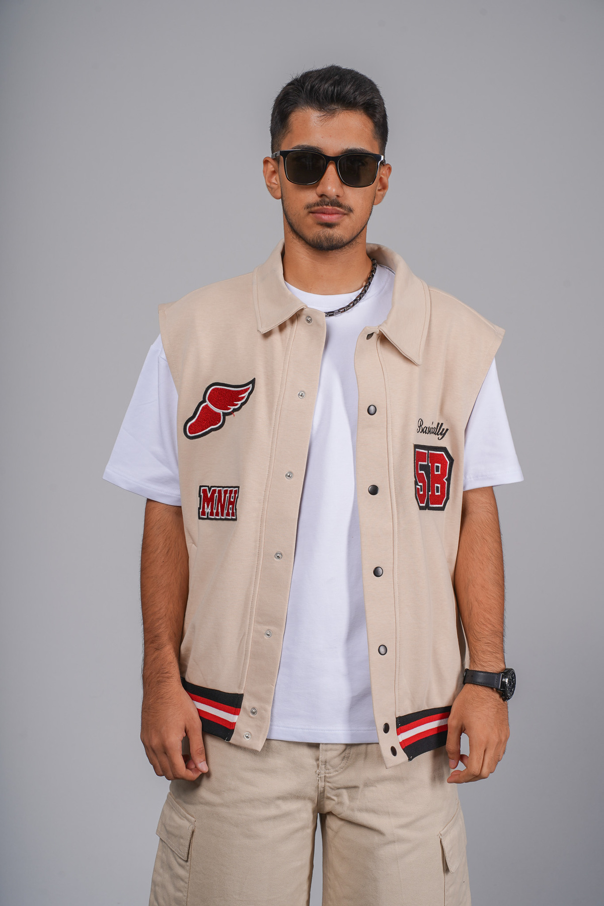 Üç İplik Kumaş Nakışlı Oversize Kalıp Yelek Üç İplik Kumaş Nakışlı Oversize Kalıp Yelek YLK0004 2XL