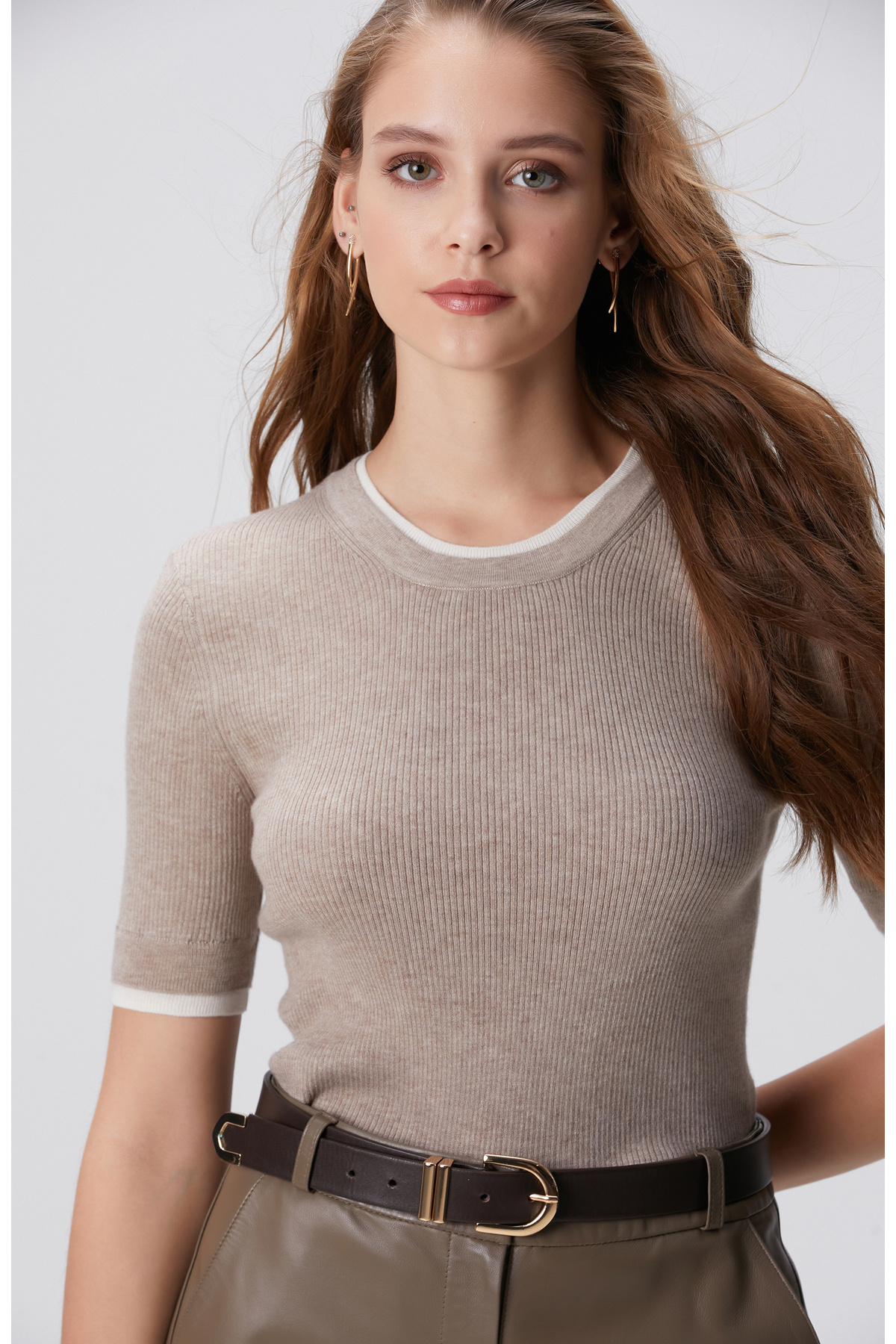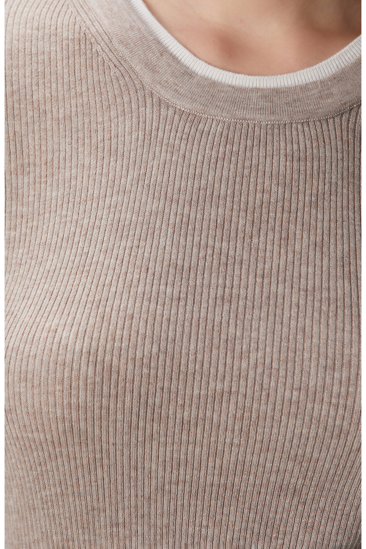Vizon Melanj Çift Renkli Kısa Kol Triko Kazak Vizon Melanj Çift Renkli Kısa Kol Triko Kazak 1095675 XL