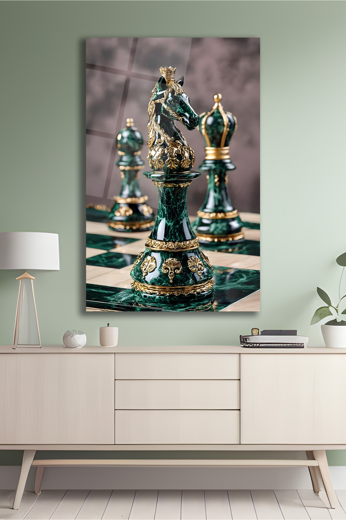 Modern Satranç Yeşil Gold At Cam Tablo Hediyelik, Salon, İşyeri, Ofis, Büyük, Duvar Dekoru Modern Satranç Yeşil Gold At Cam Tablo Hediyelik, Salon, İşyeri, Ofis, Büyük, Duvar Dekoru DS70-20261DS 150 x 95