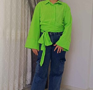 İspanyol Kol Beli Bağlamalı Gömlek İspanyol Kol Beli Bağlamalı Gömlek gmlk23 XL