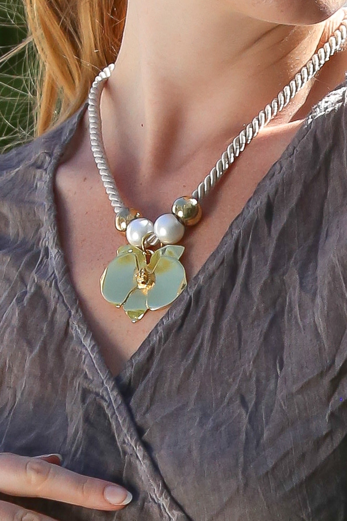 Metal Orkide Objeli Tasarım Kolye Metal Orkide Objeli Tasarım Kolye GK-CHC-2541 تک سایز