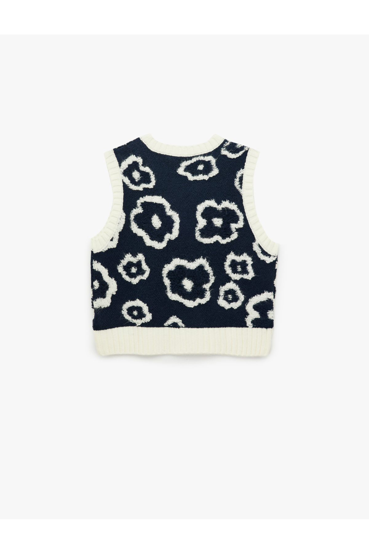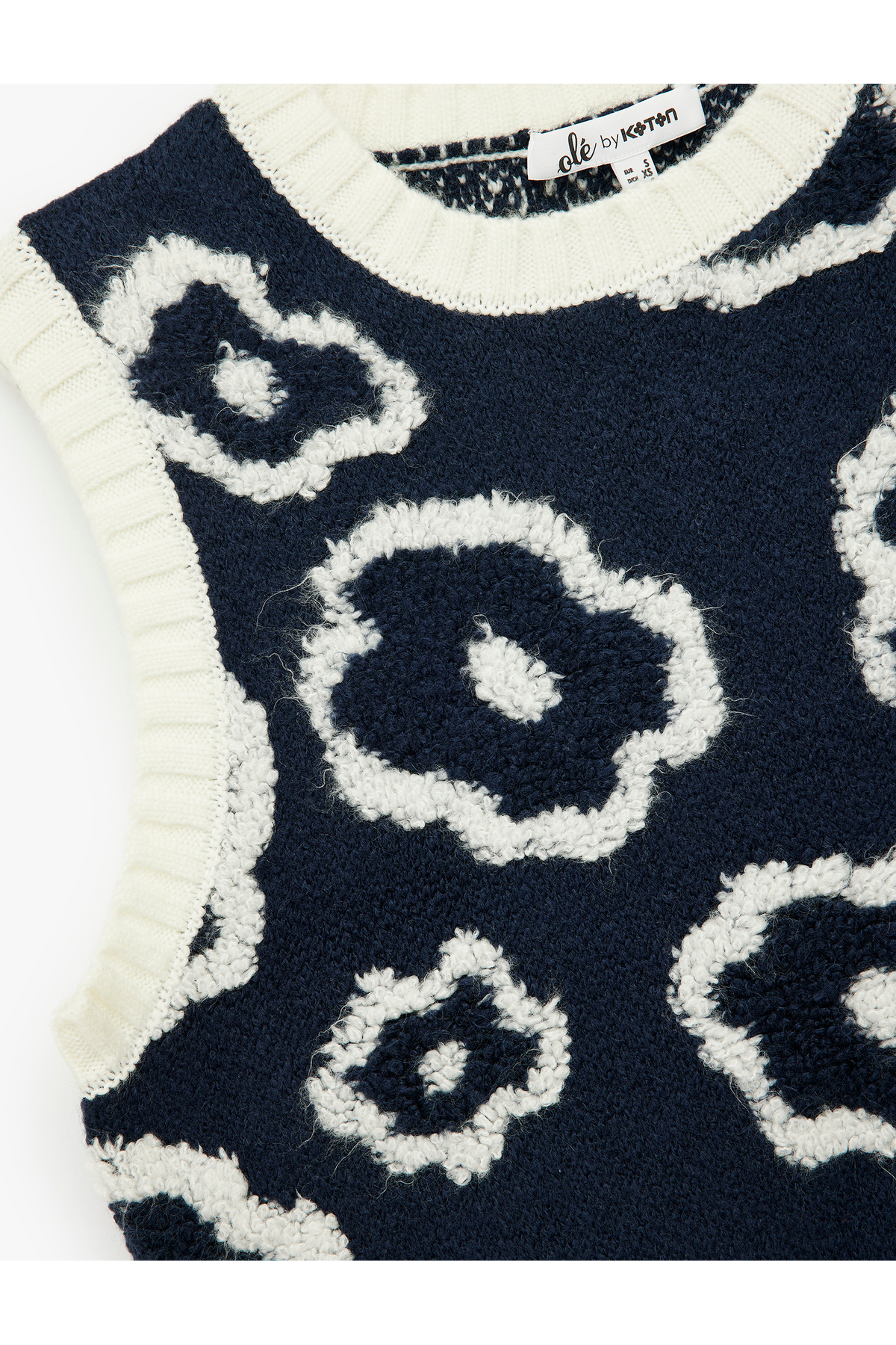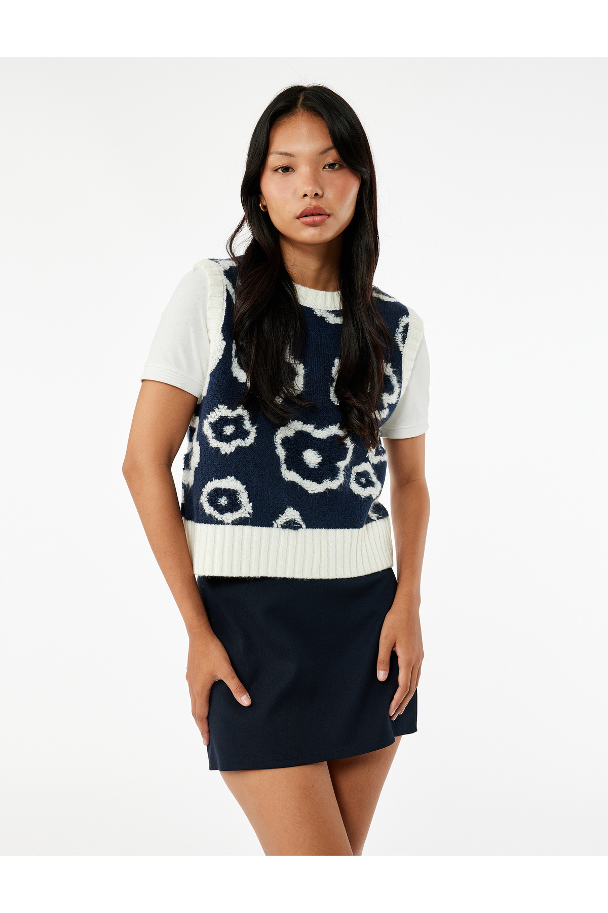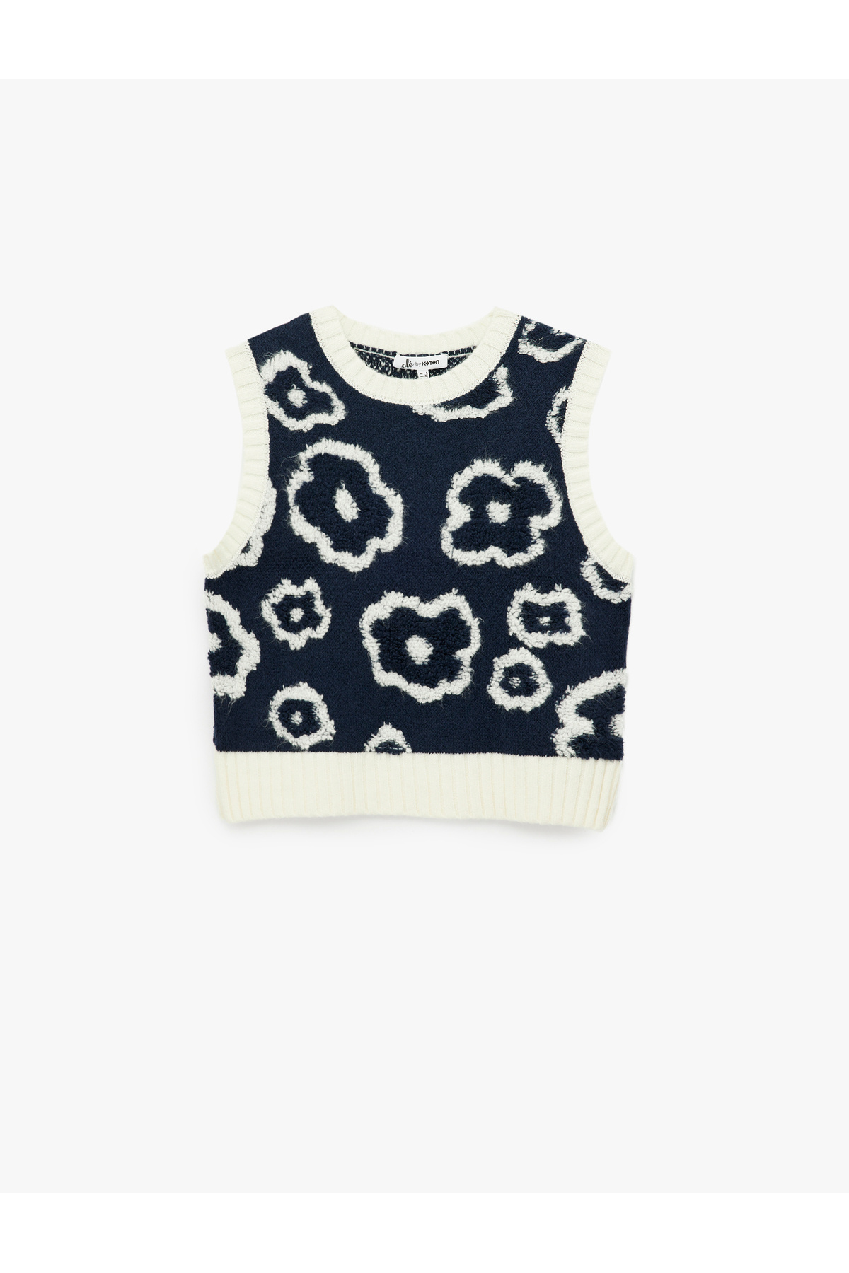 Bisiklet Yaka Çiçekli Kolsuz Triko Süveter Bisiklet Yaka Çiçekli Kolsuz Triko Süveter 6WAL20001HT L
