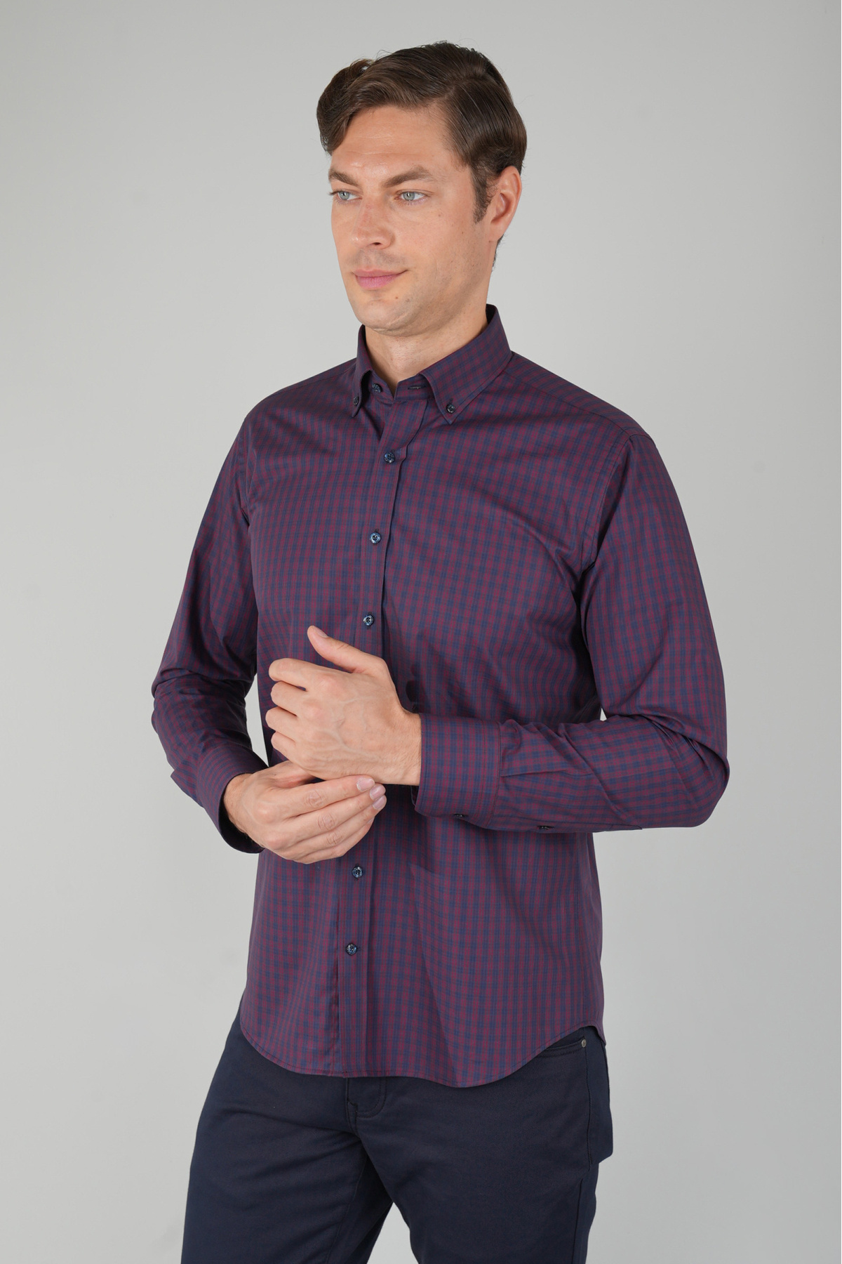 Regular Fit Uzun Kollu Ekose Poplin Erkek Gömlek Regular Fit Uzun Kollu Ekose Poplin Erkek Gömlek W59651Z8-LMU 3XL